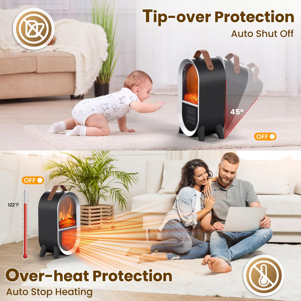 Riseon Small Space Heater For Indoor Use, 1500W/750W Portable Electric Fireplace Heater With 3D Flame, Ceramic Heater Fan With Thermostat Overheat & Tipover Protection For Home Office Room Desk, Black