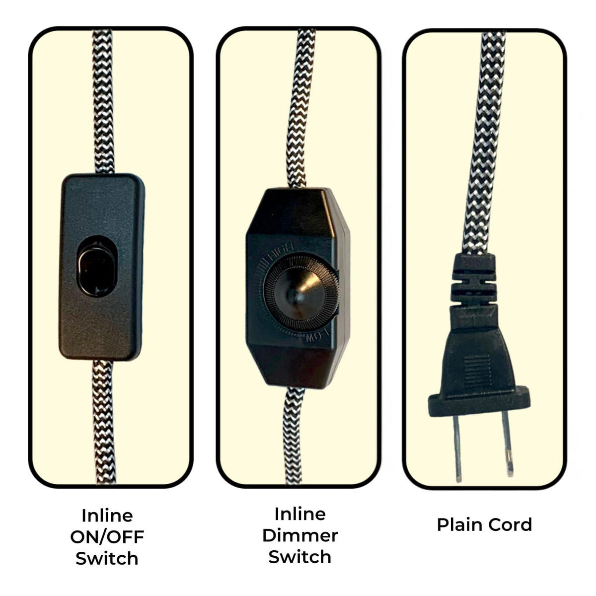 Q: Does the lamp cord come with a dimmer switch?A: Yes, the lamp cord features a rotary dimmer switch that allows you to easily adjust the brightness of your lamps.
