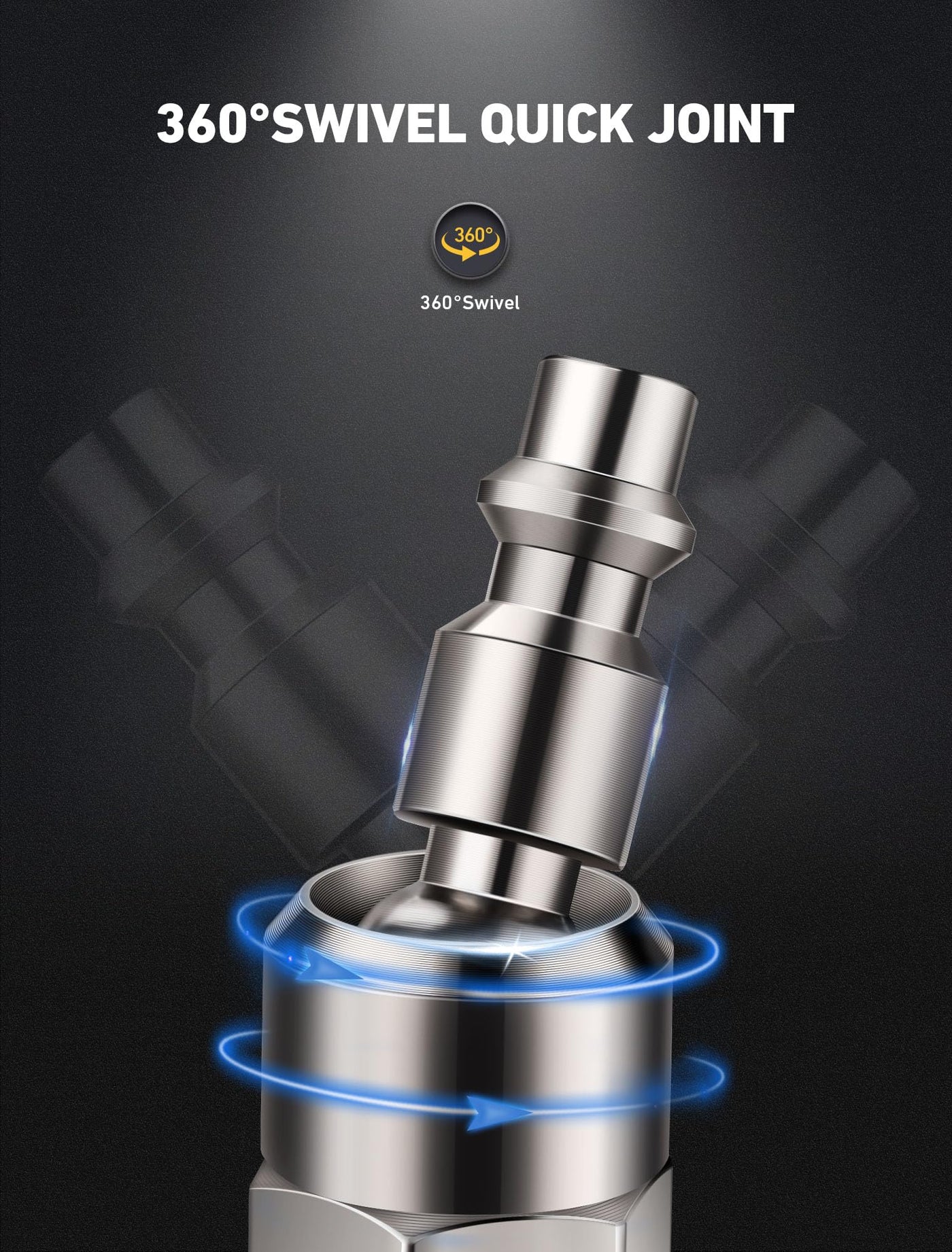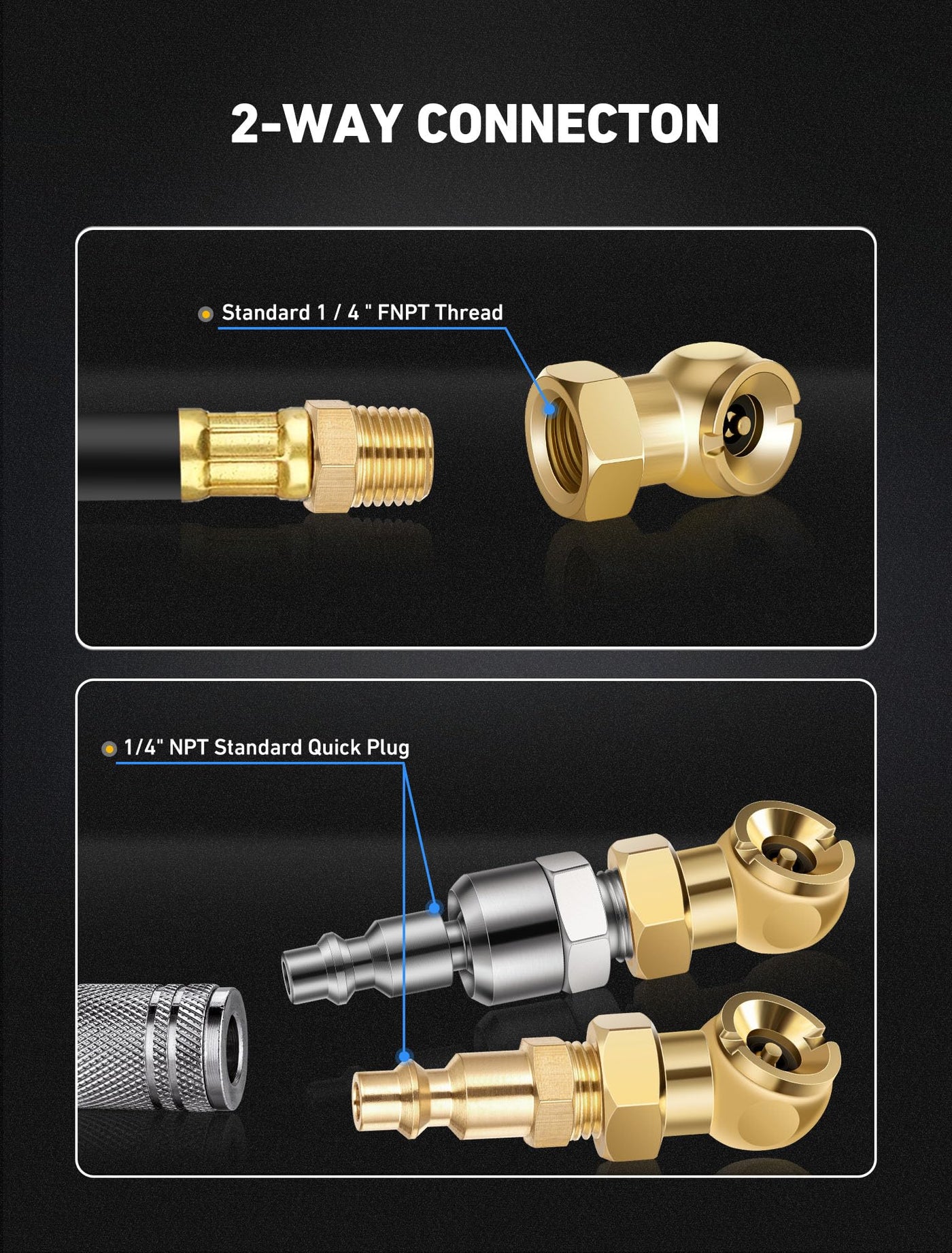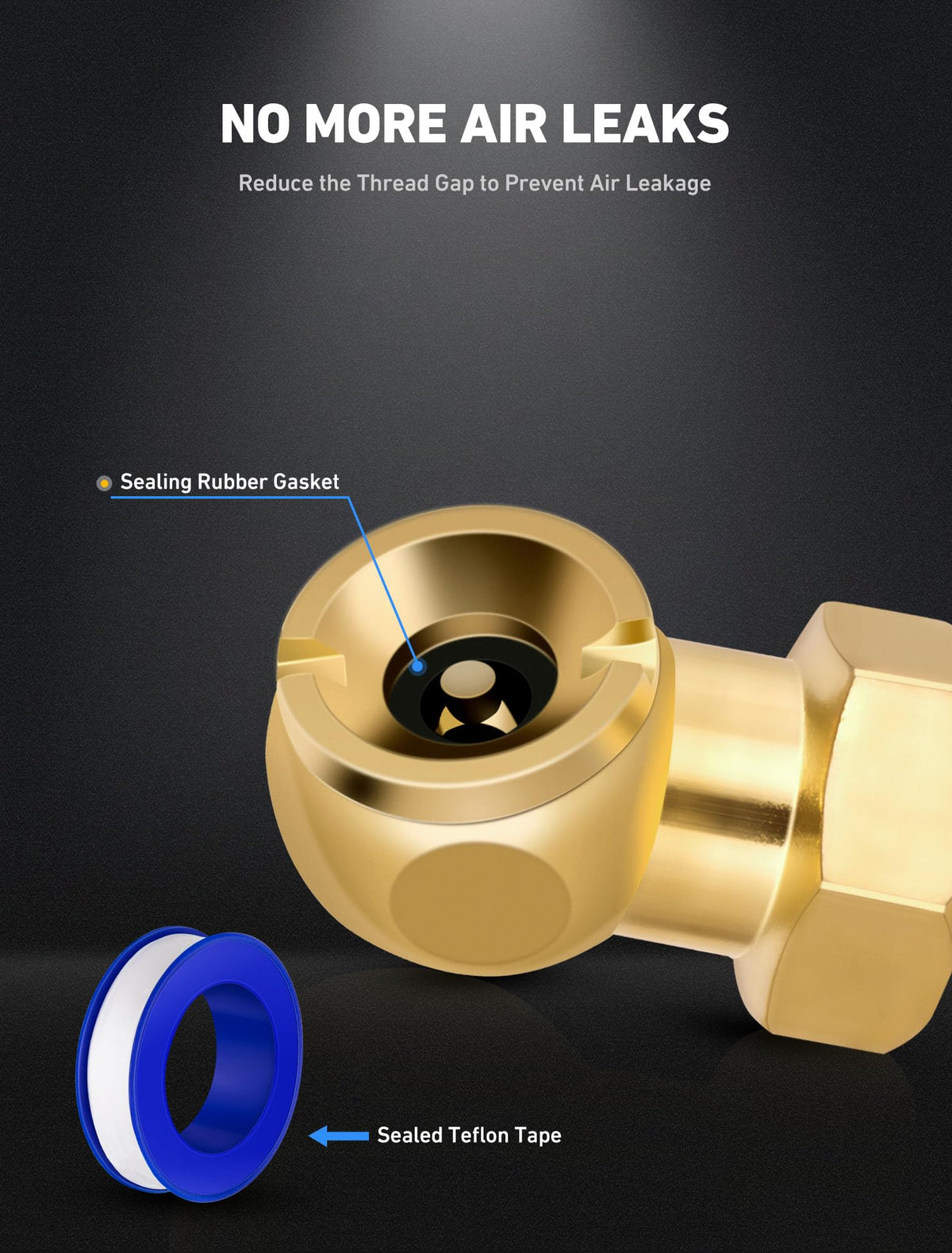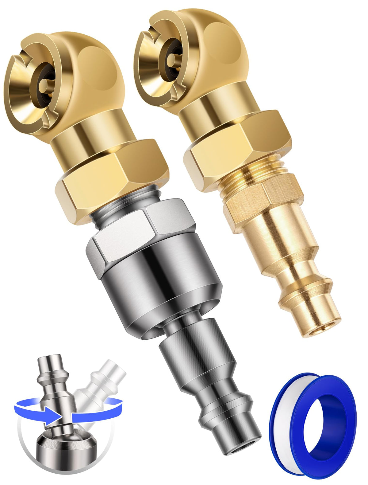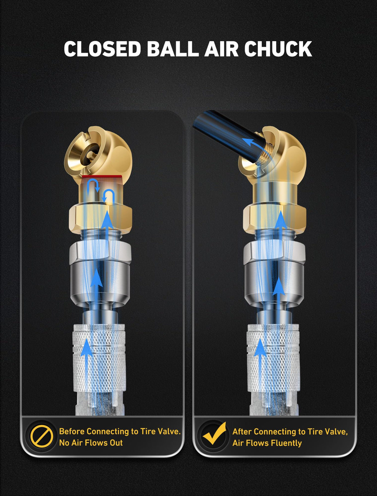 Sardvisa 2-Packs Closed Ball Air Chucks,Portable Tire Air Inflate Chuck With 360 Swivel & 1/4'' Npt Standard Quick Plug, Tire Inflator Gauge Nozzle For Air Compressor Accessories ?Closed Ball Tire Chuck?:Sardvisa Heavy Duty 2 Packs 1/4'' Fnpt Air Chucks With 2 Pcs 1/4'' Mnpt Quick Plug.300 Psi Maximum Air Pressure. Suitable For Commercial And Industrial Air Filling Applications. ?No More Air Leaks?: Closed Ball Structure With Waterproof Sealed Raw Tape, Reduce The Thread Gap To Prevent Air Leakage ?More Quality Material?: The Ball Inflator Nozzle And Quick Plug Are All Made Of Brass Metal Material, Which Is Resistant To Wear And Aging, And Will Not Rust Even When Used In A Humid Environment. ?Easy To Use?: When You Want To Work With A Closed Ball Pneumatic Chuck, Just Connect It By Turning The Screw.Two Ways To Connect To Meet Your Needs. ?Wide Application?: Sardvisa 2 Pcs Tire Air Chuck Set Can Be Applied For Air Pump And Compressor Accessories, And Also Can Be Applied For Trucks, Buses, Cars, Bicycles, Motorcycles And More. Great Tire Inflator Attachment Brings Convenience To Your Life.