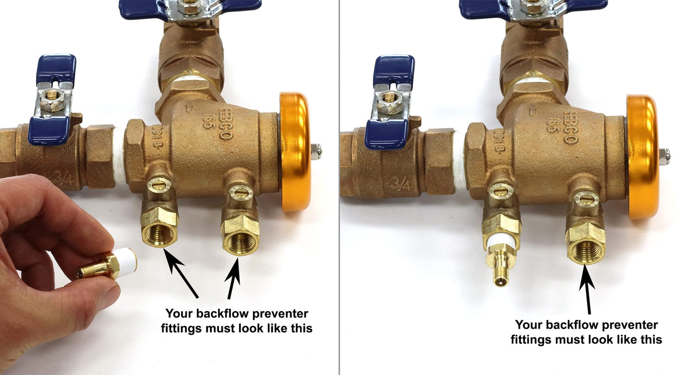 Q: Are these fittings compatible with all types of backflow preventers?A: No, these fittings are designed specifically for female NPT connections. It's important to check if your backflow preventer has either male SAE 45° Flare or female NPT connections before purchasing.