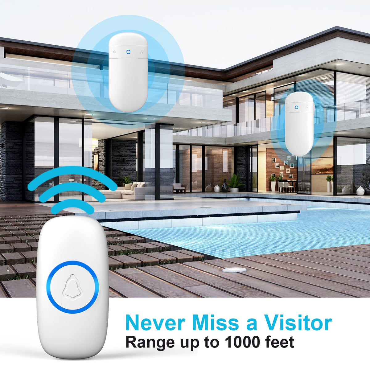 Q: What is the maximum range of the SECRUI Wireless Doorbell?A: The SECRUI Wireless Doorbell has an impressive operating range of over 1000 feet, allowing you to hear the doorbell from a significant distance.