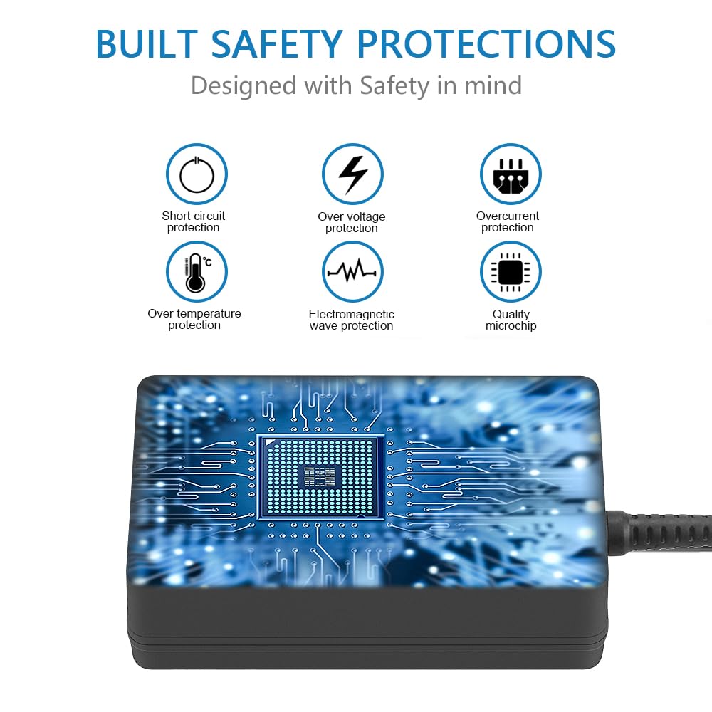 Q: What safety features does this power adapter include?A: The SHNITPWR adapter includes multiple safety features such as over-voltage protection, over-current protection, over-temperature protection, and short circuit protection. These built-in safeguards help prevent damage to both the adapter and your connected devices, ensuring safe operation during use.