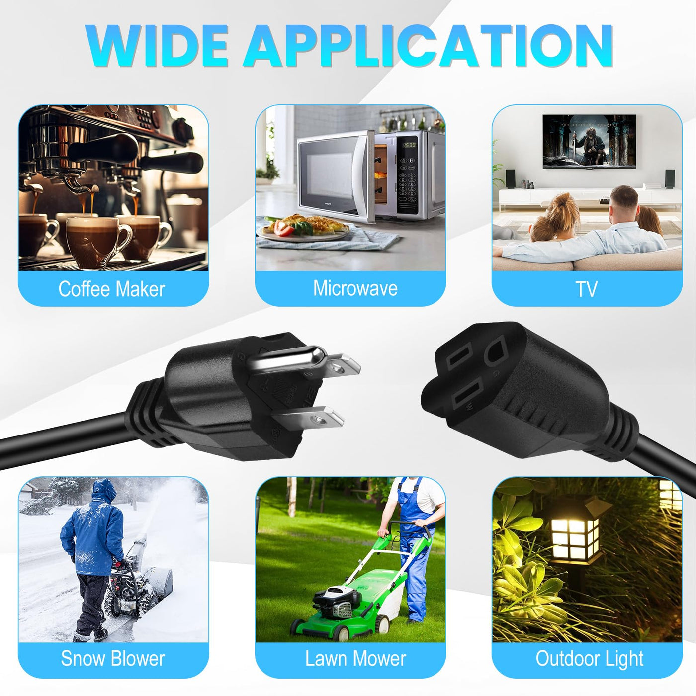 Q: Can I use this extension cord with all types of devices?A: While this extension cord is universally compatible with most small appliances and electronics, it’s important to check the voltage and amp rating of your equipment to ensure compatibility.