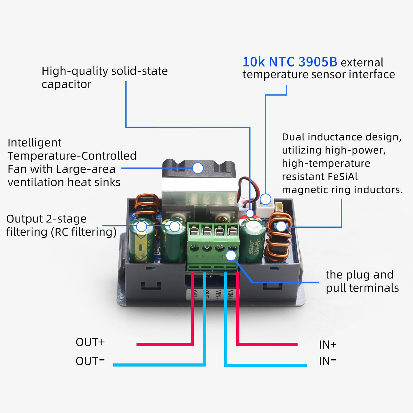 Q: What is the input and output voltage range of the SK-120 Power Converter?A: The SK-120 Buck Boost Power Converter has an input voltage range of DC 6.0-36V and an adjustable output voltage range of DC 0-36V, making it versatile for different applications.