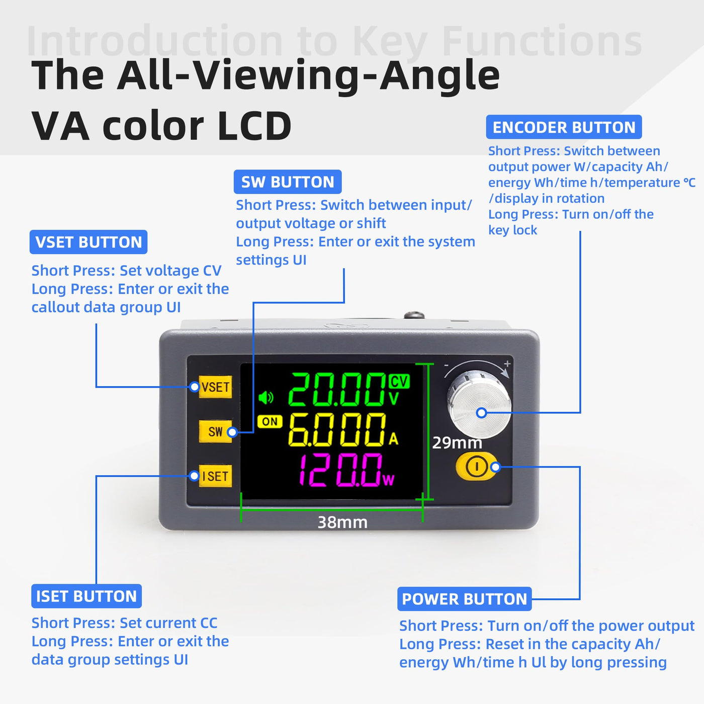 Sk 120 120W Buck Boost Power Converter Cc Cv 6 36V To 0 36V With Color Display Dc To Dc Power Converter 5V 6V 12V 24V Power Modu