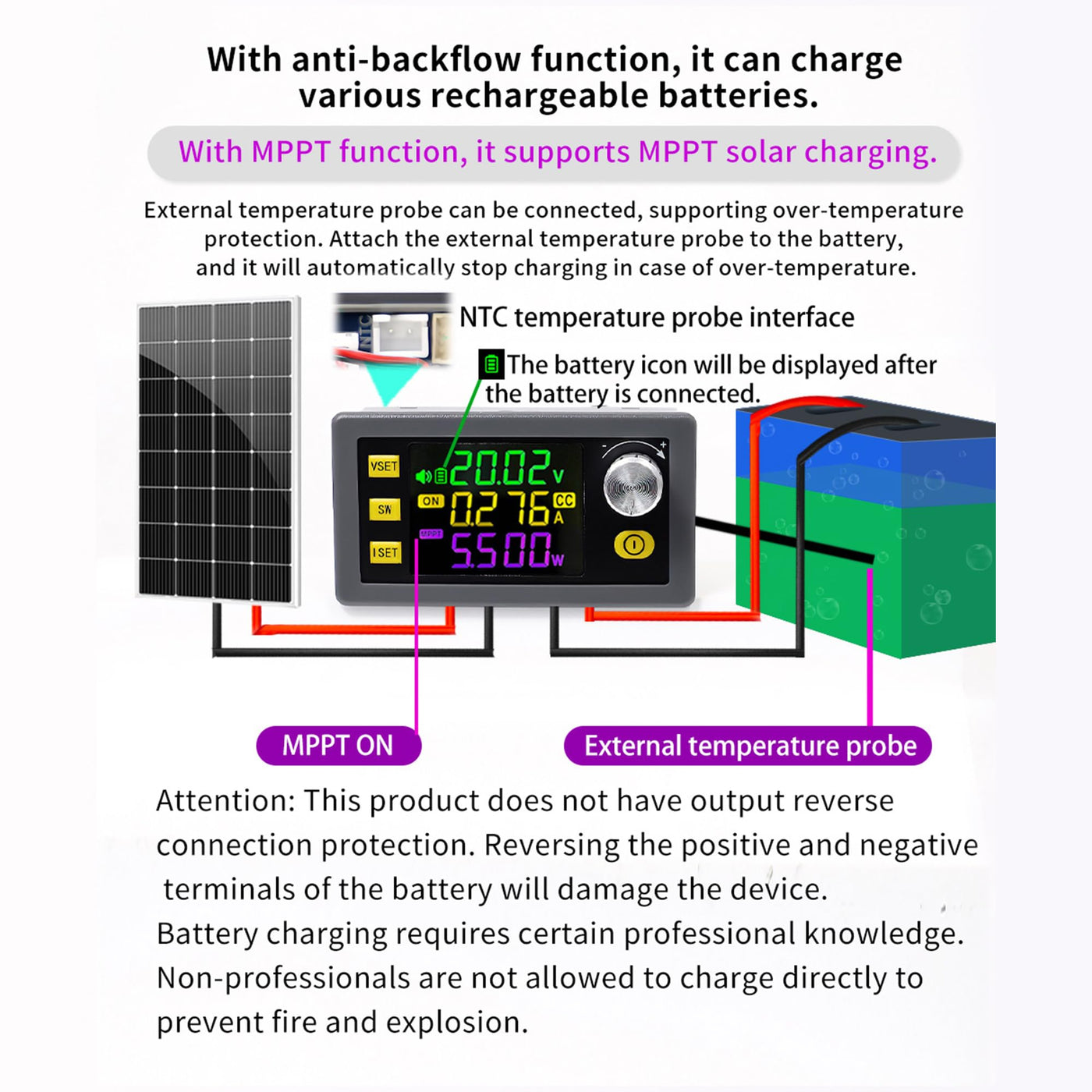 Q: How can I use the SK-120 as a power supply for my projects?A: You can use the SK-120 as a desktop power supply to modulate the voltage and current for your projects, such as powering electronics, DIY projects, or even as a solar charging controller.