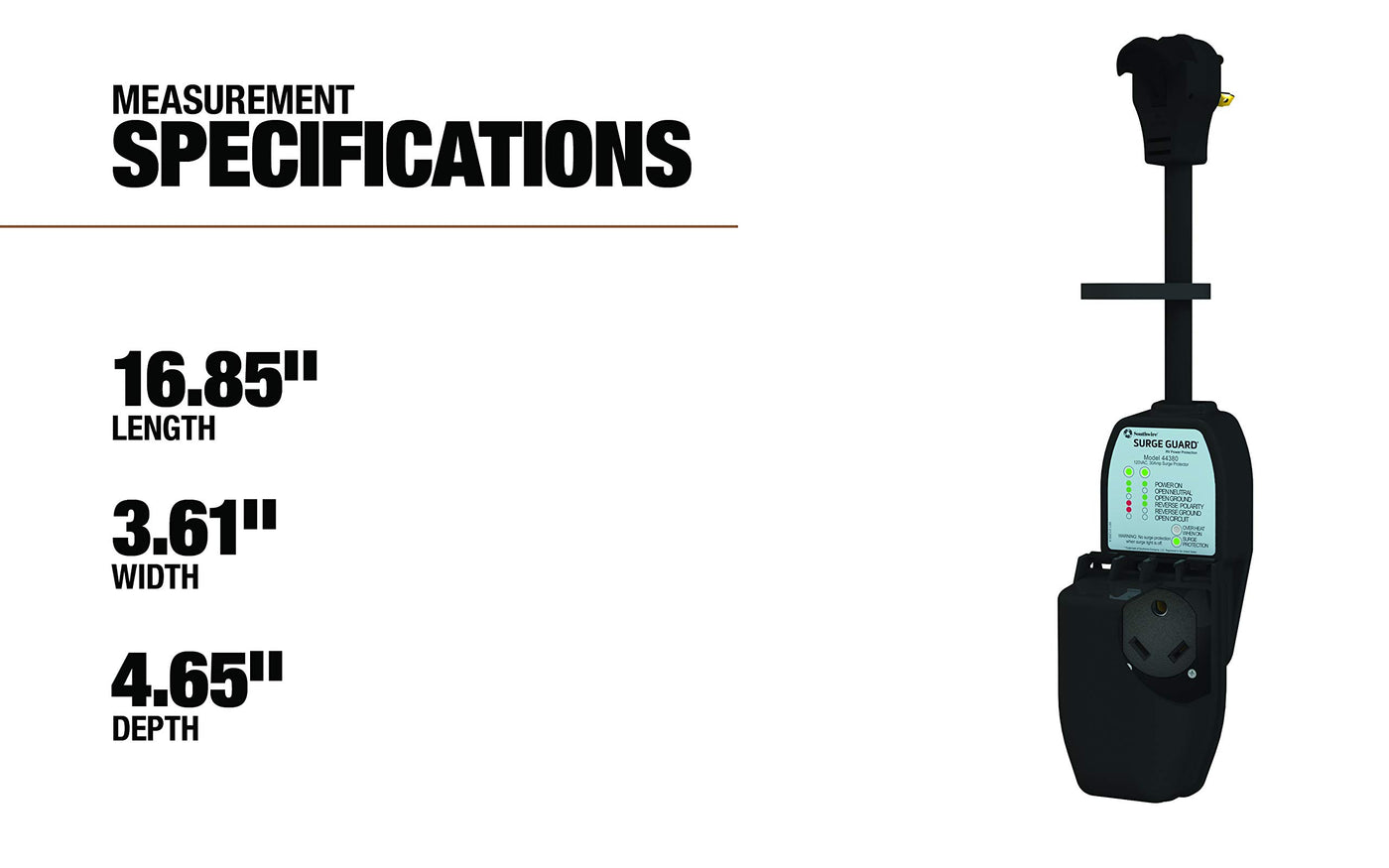 Q: What are the dimensions and weight of the Surge Guard?A: The Southwire Surge Guard measures 23.38 inches in length, 5.63 inches in width, and weighs 2.43 pounds, making it portable and easy to handle.