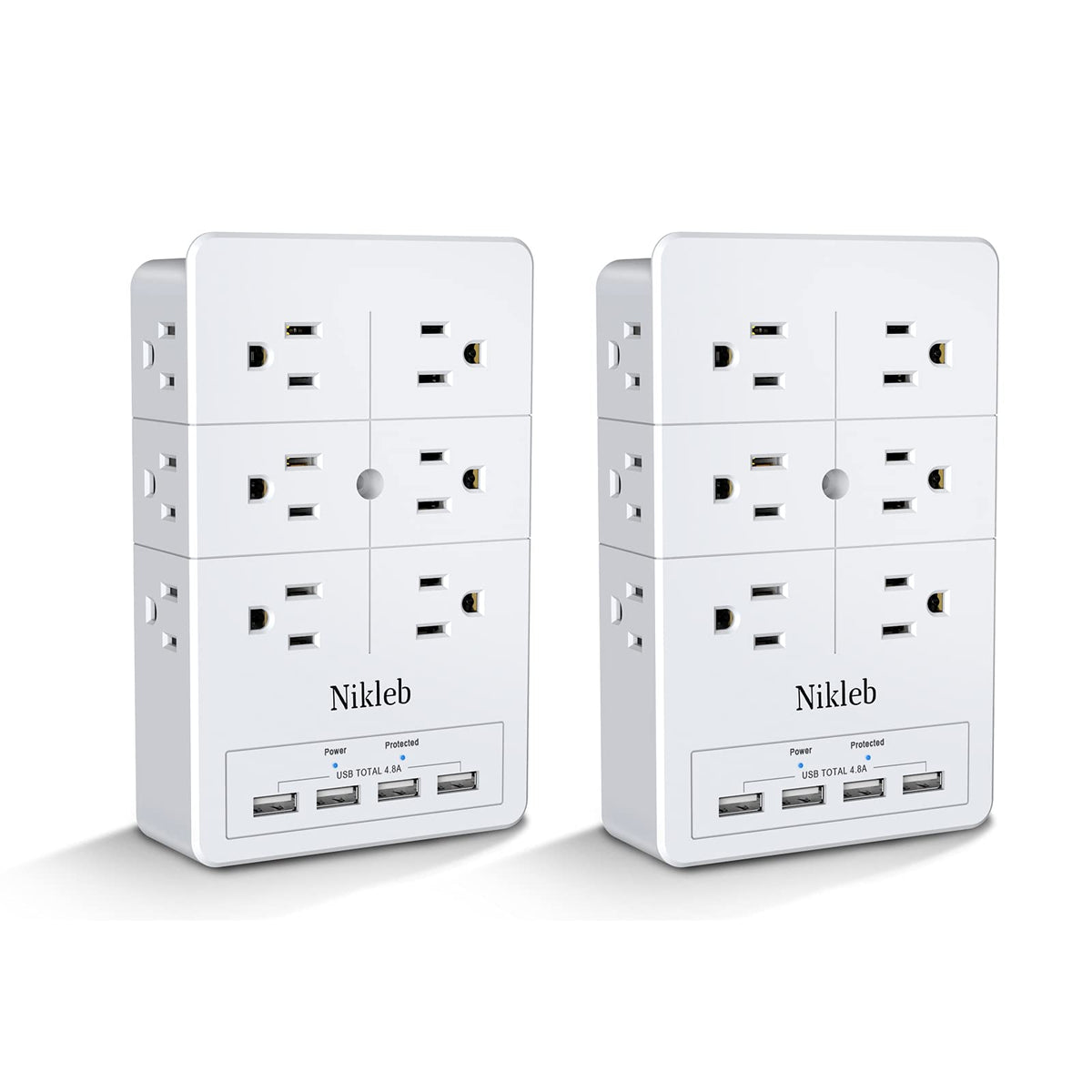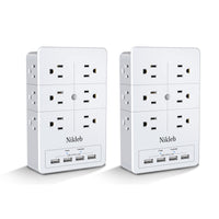 Surge Protector Nikleb 2 Pack, Multi Outlet Plug With 4 Usb, Wall Charger Box Multiports Total 4.8A, Electrical Outlet Splitter,
