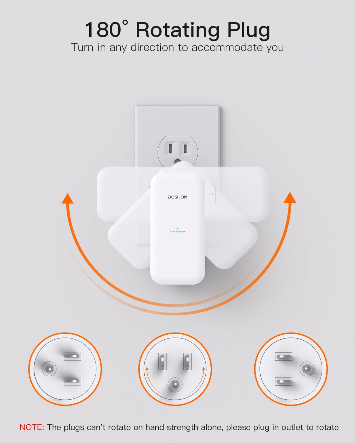 Surge Protector Outlet Extender With Rotating Plug,6 Ac Multi Plug Wall Outlet,4 Sided Outlet Splitter,900J Plug Extension Outl