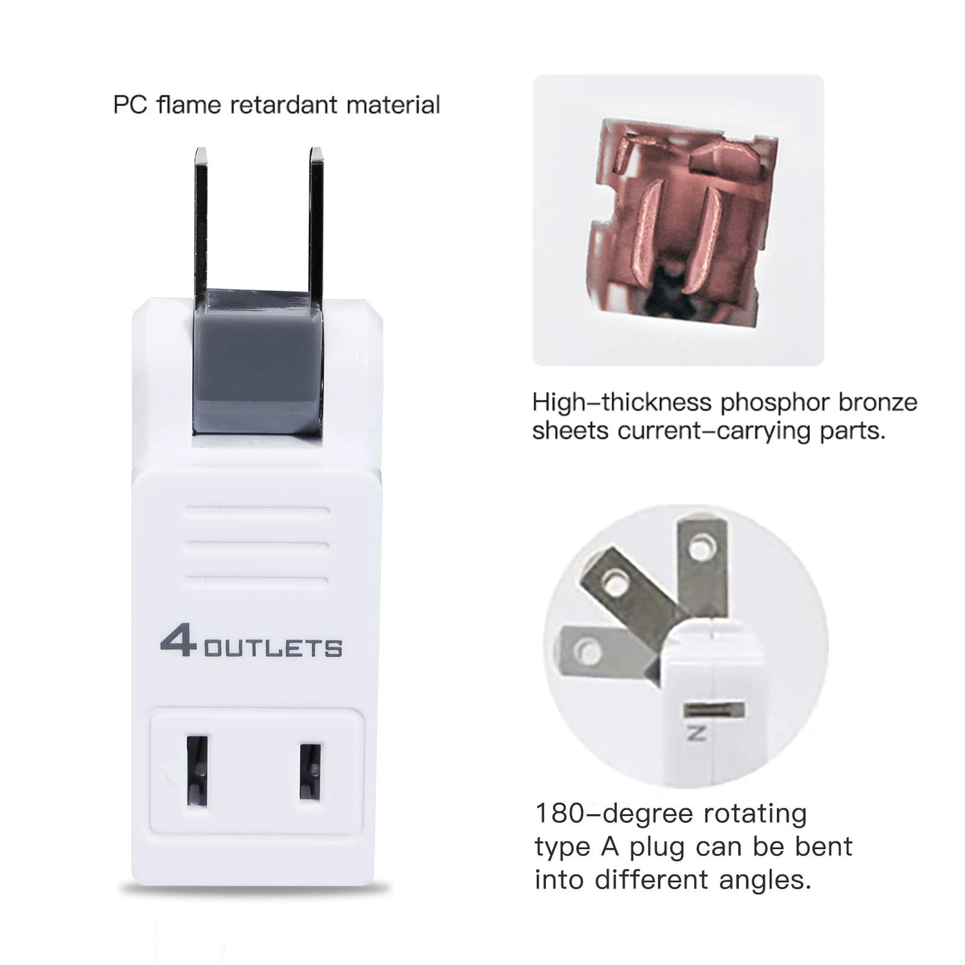 Sycon 2 Prong Swivel Wall Adapter, Electrical 4 Way Outlet Expander Plug, Multi Plug Extender Splitter, Multiple Ungrounded Mini
