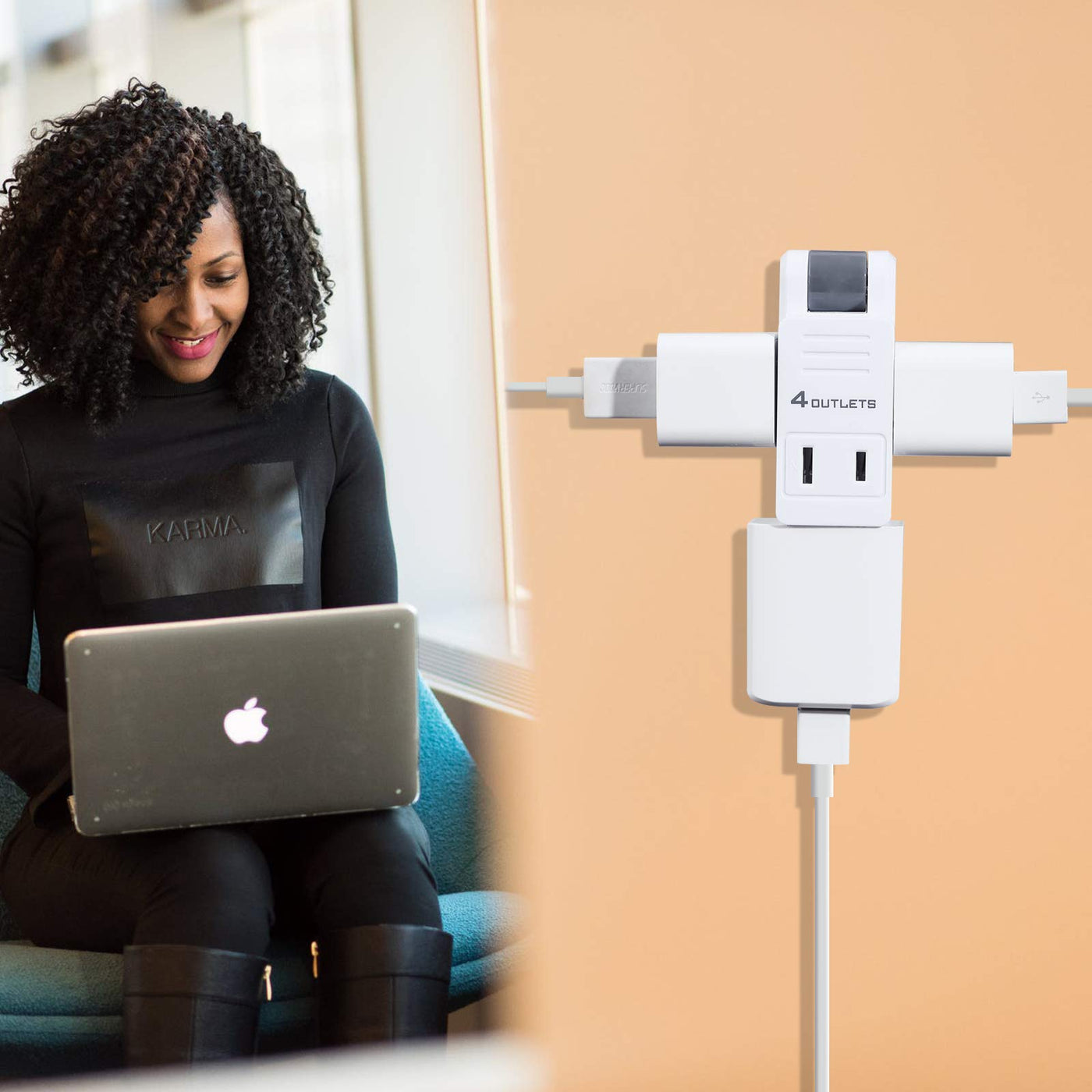 Q: How does the swivel design benefit me?A: The swivel design of the SYCON adapter allows for easy access to outlets and makes it convenient to add more devices in tight spaces, such as behind furniture or nightstands, without blocking adjacent outlets.