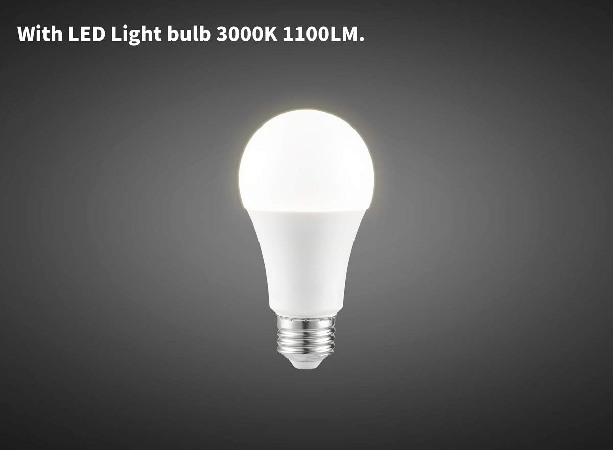 Q: What type of light bulb does the fan use?A: The fan includes a white LED light grille combo with a 12W E26 socket and provides warm white light at 3000K, delivering 1100 lumens of brightness.