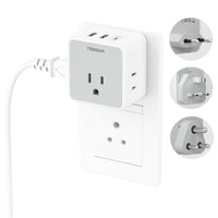 Tessan European Uk India Travel Plug Adapter Kit, International Detachable Converter With 3 Outlet 3 Usb(1 Usb C), Type C/G/D Eu