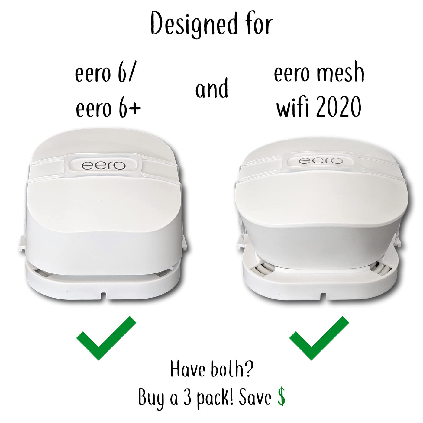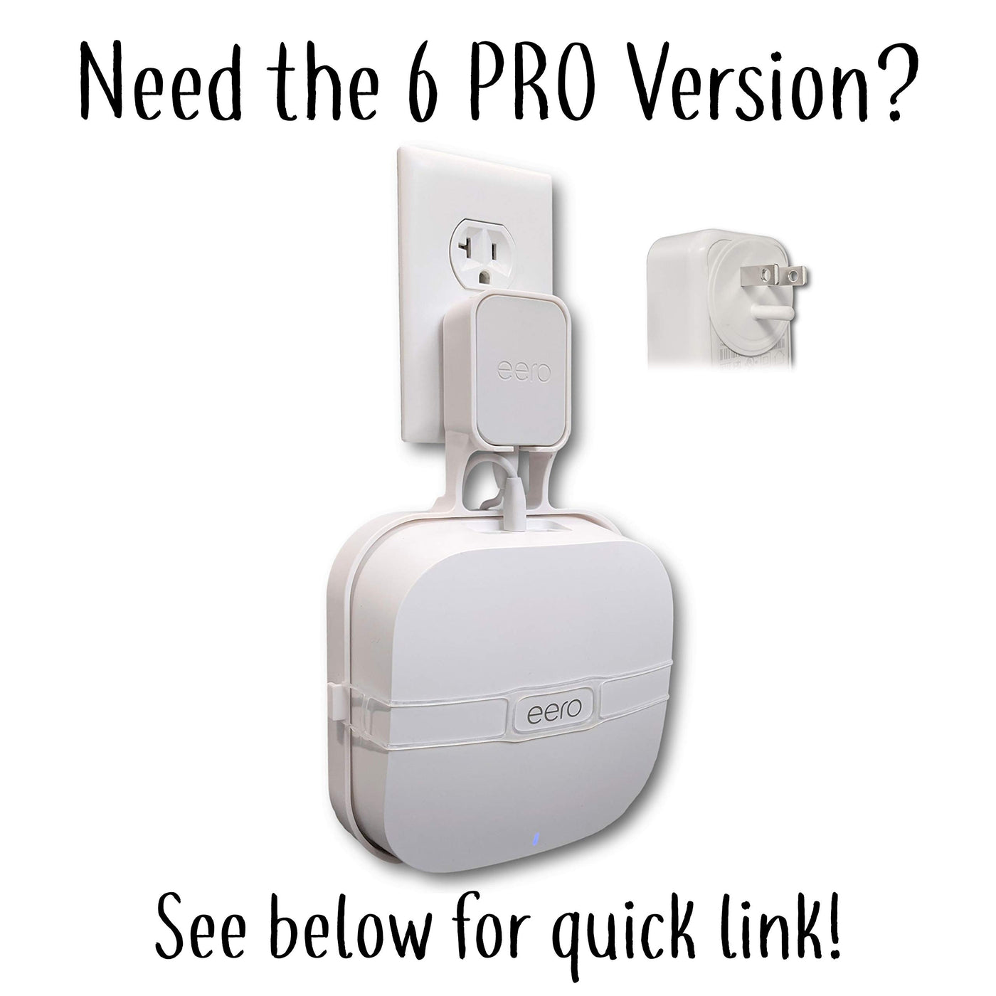 The Eero Genie Is Designed To Fit Both The New Eero 6+, Eero 6, And The 2020 Eero Mesh Wi-Fi Systems Perfectly! It Also Works With Both Adapters That Ship With The Eero (15W And 24W). Have Both? Buy A 3 Pack And Keep The Same Look Throughout The House. | Our Custom Eero Approved Silicone Band Attaches The Eero To The Eero Genie Allowing The Cable Access To Face Up, Down, Left Or Right For The Easiest Access, And Prevents Interference. | The Eero Genie Is The Only Mount That Works On Vertical And Horizontal Outlets Making Tight Spots Accessible. | Our Mount Uses The Cord That Comes With Your Eero And Wraps It Neatly Around Our Patented ?Ord Groove Organizer