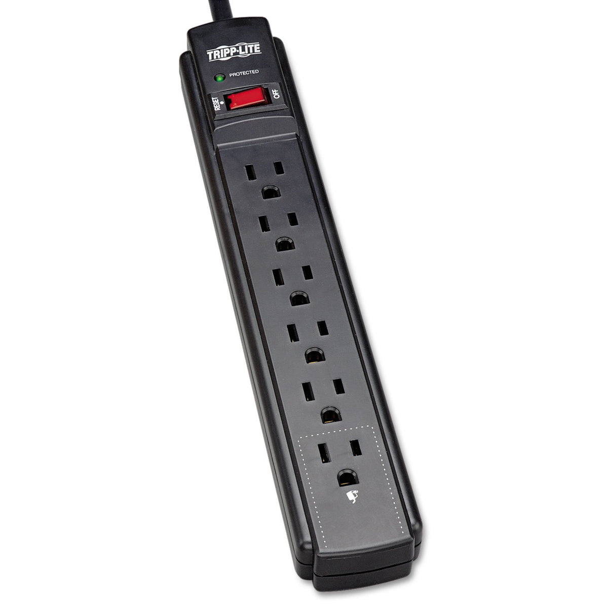 Q: Is the Tripp Lite surge protector safe for use with high-powered devices?A: Yes, the Tripp Lite 6-Outlet Surge Suppressor is designed to safely handle devices with a power rating of up to 1800 watts and a current of 15 amps. It conforms to UL 1449 safety standards, ensuring that your devices are protected.
