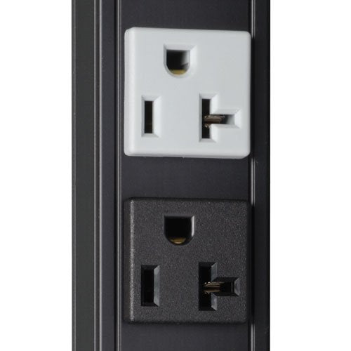 Q: What is the significance of the color-coded outlets and plugs in this PDU?A: The color-coded outlets and plugs help simplify cable management and reduce confusion by clearly indicating which outlets belong to each independent 20A circuit. This makes it easier to manage power distribution in multi-server configurations.
