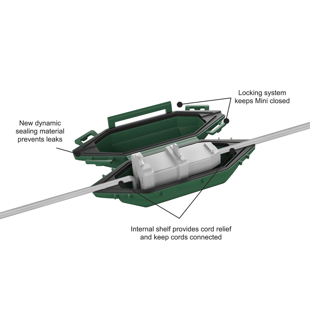 The Mini Is Specifically Designed To Protect Holiday Light Power Cord Connections From Rain And Melting Snow. It Has Never Been Easier To Protect The Electrical Connections On Your Holiday Light Display. No More Plastic Bags And Duct Tape! Keep Your Connections Dry, Your Family Safe, And Your Lights On! Proudly Made In The Usa! Please Measure Your Plug Heads To Make Sure They Fit The Internal Dimensions 3.25''L X 1.25''H X 1.25''W
