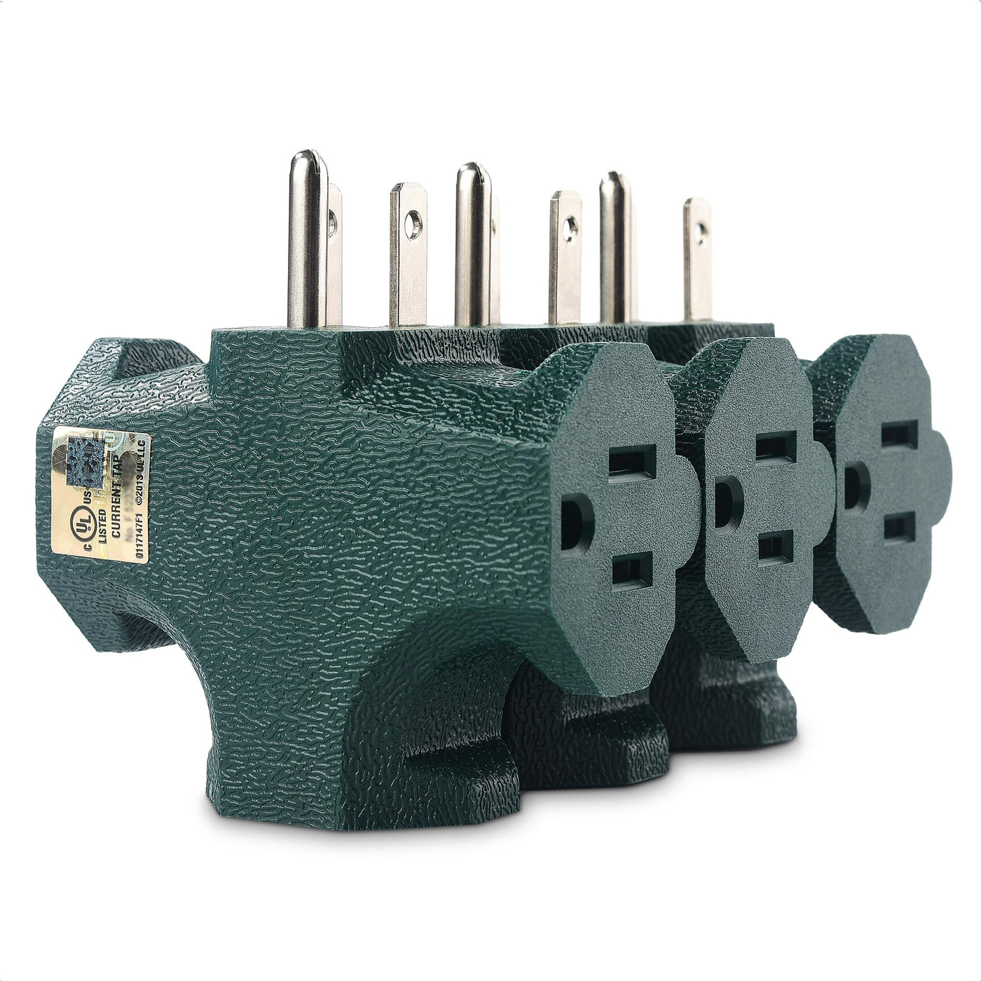 [Ul Listed] Cable Matters 3 Pack 3 Way Plug Adapter 15A 1875W In Green (3 Prong 3 Outlet Adapter, Power Splitter Plug Outlet, Mu