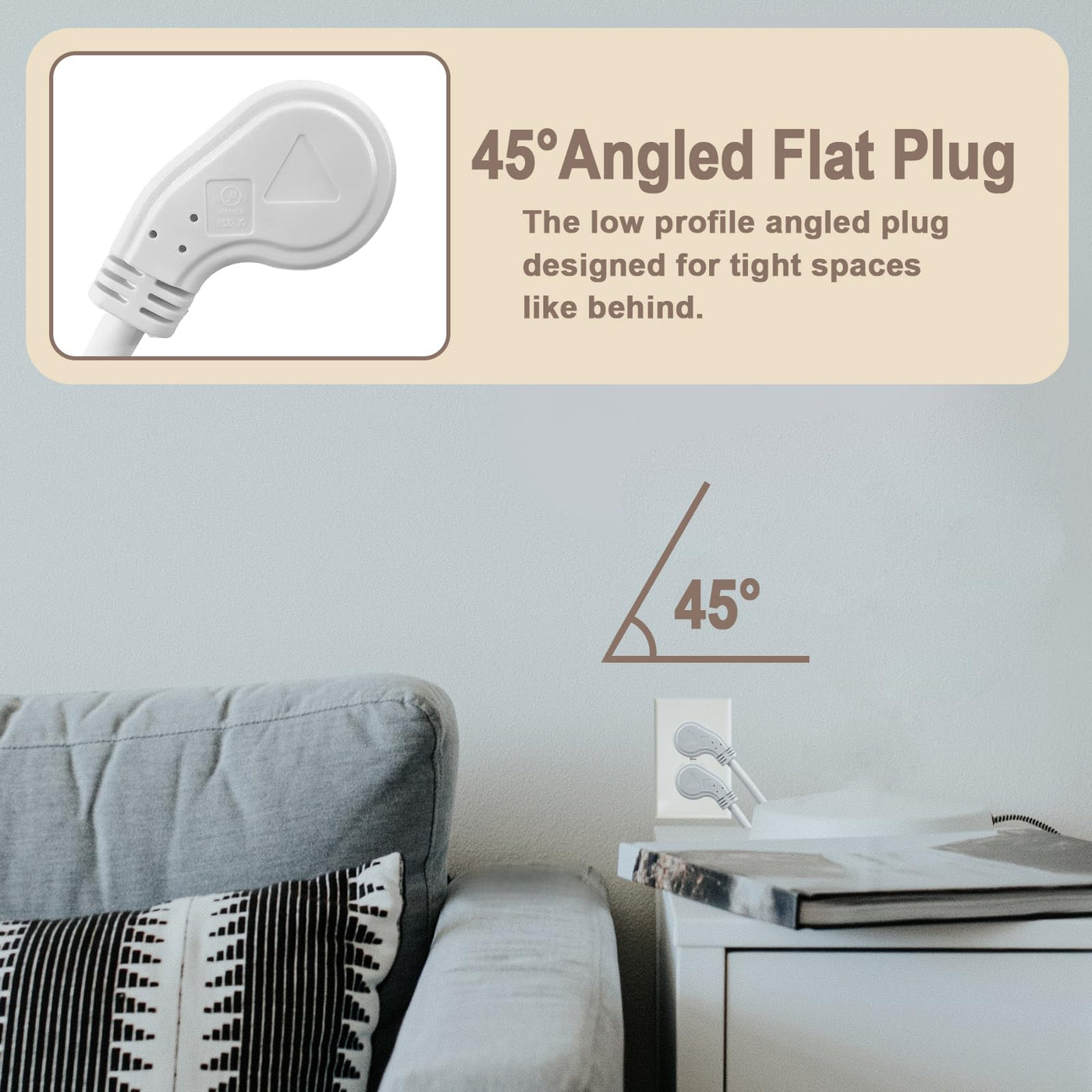 Q: Can I use this extension cord behind furniture?A: Absolutely! The flat plug design allows the cord to fit easily behind furniture, enabling you to push items like sofas and desks against the wall without damaging the plug.