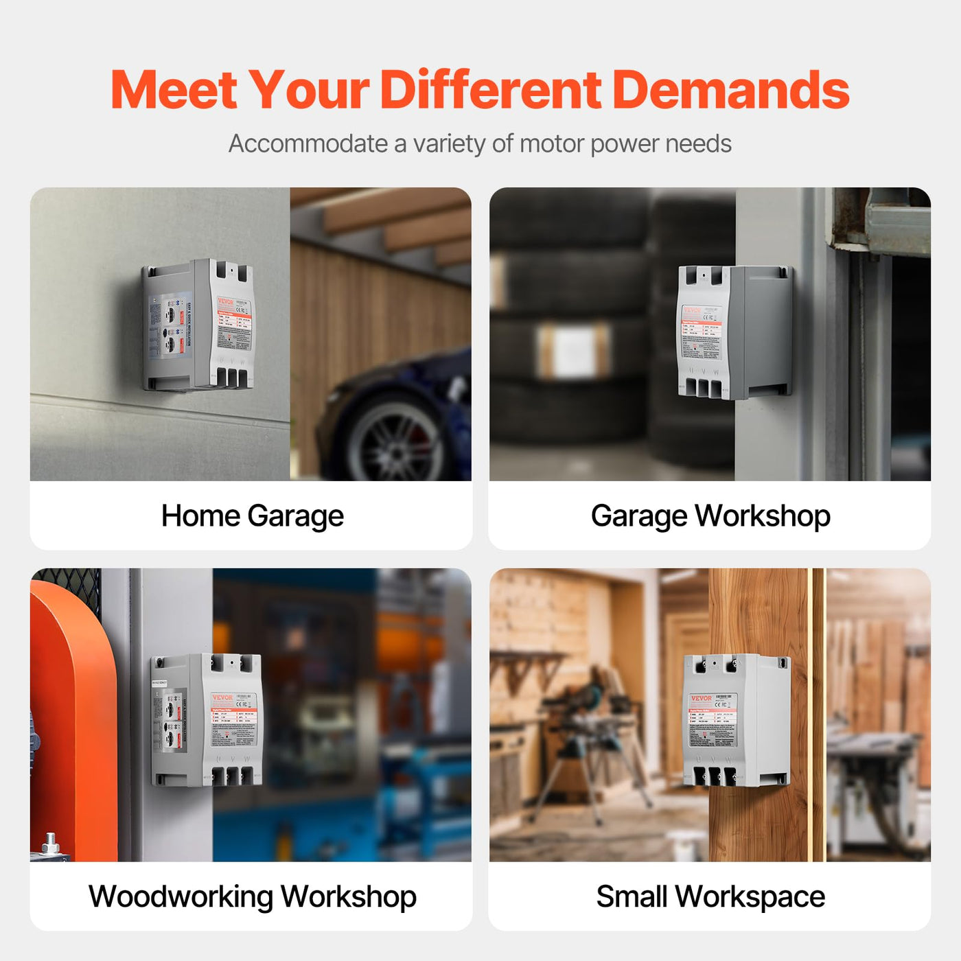 Q: Can this phase converter handle different motor types?A: The VEVOR 3 phase converter is versatile and can power various high-powered motor-driven equipment, including power tools and woodworking machinery. However, it's recommended to match the converter's power rating closely with the motor's requirements to avoid overheating or startup failures.