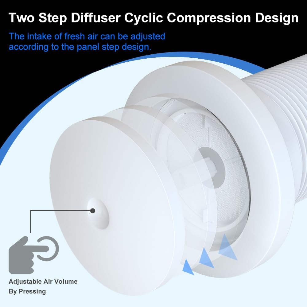 Weiworld Passive Air Vent 4Inch For Fresh Air Environment Energy Efficient Fresh Air Intake Come With Aluminium Telescopic Duct,
