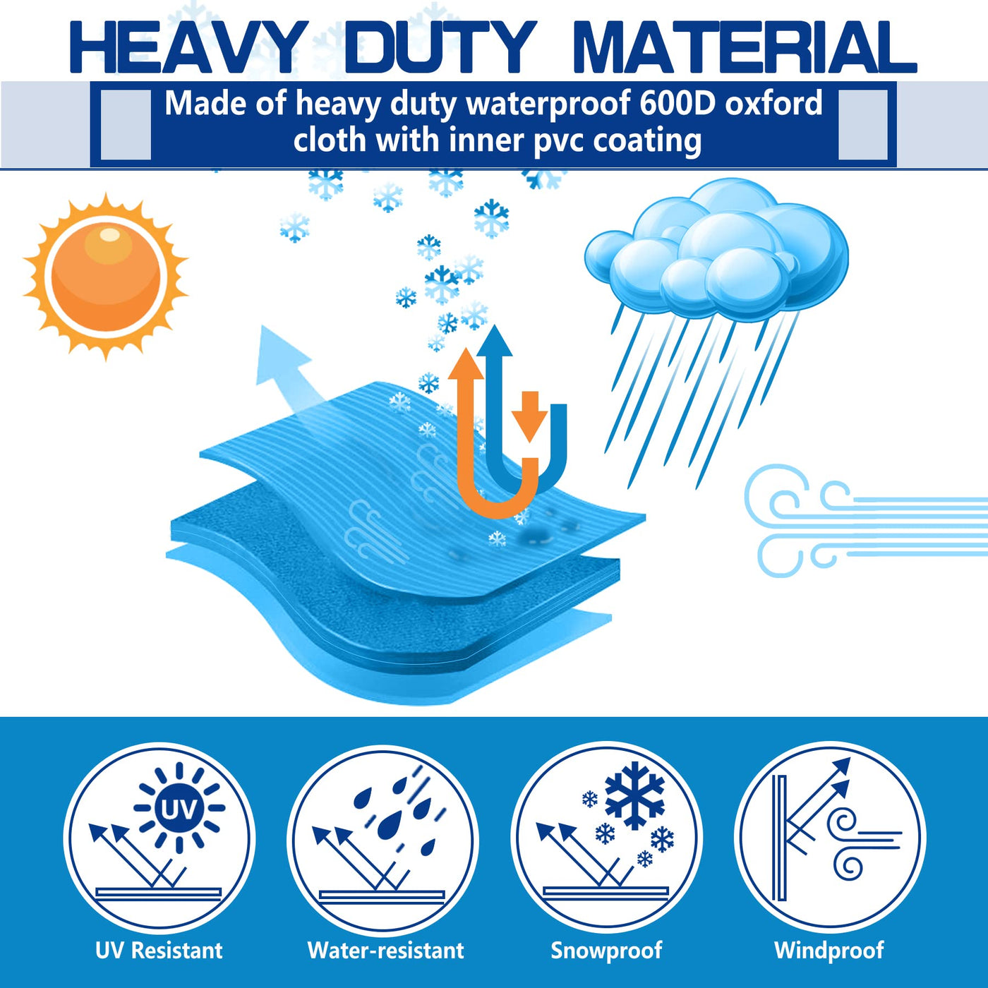 Q: Is the air conditioner cover waterproof?A: Yes, the air conditioner cover is made of durable 600D oxford cloth with a waterproof coating, providing excellent protection against rain, snow, and other harsh weather conditions.