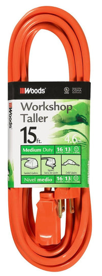 Woods Light Duty Extension Cord, 15Ft, 16 Gauge, 3 Conductor, General Purpose Cord, Sjtw, Orange, 0266
