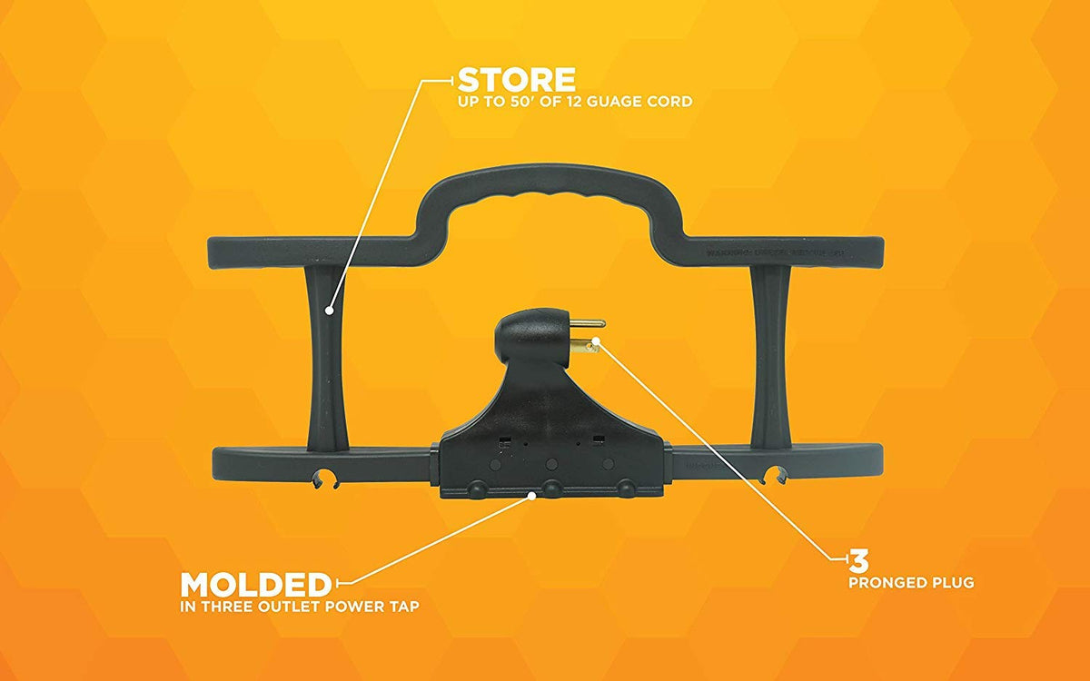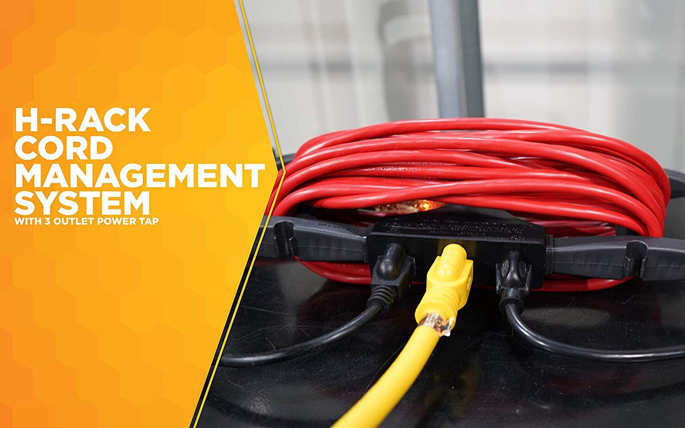 This 3-Outlet H-Rack Cord Management System Conveniently Organizes Your Cord When You Are Finished With It. Turns A Single Outlet Cord Into Three Outlets. Stores Up To 50 Feet Of 12 Awg Wire.
