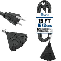 Yojoe 3 Outlets Indoor Outdoor Extension Cord, 3 Prong 13A Weatherproof Power Cord Multiple Outlets, 16 Gauge Heavy Duty 15 Ft B