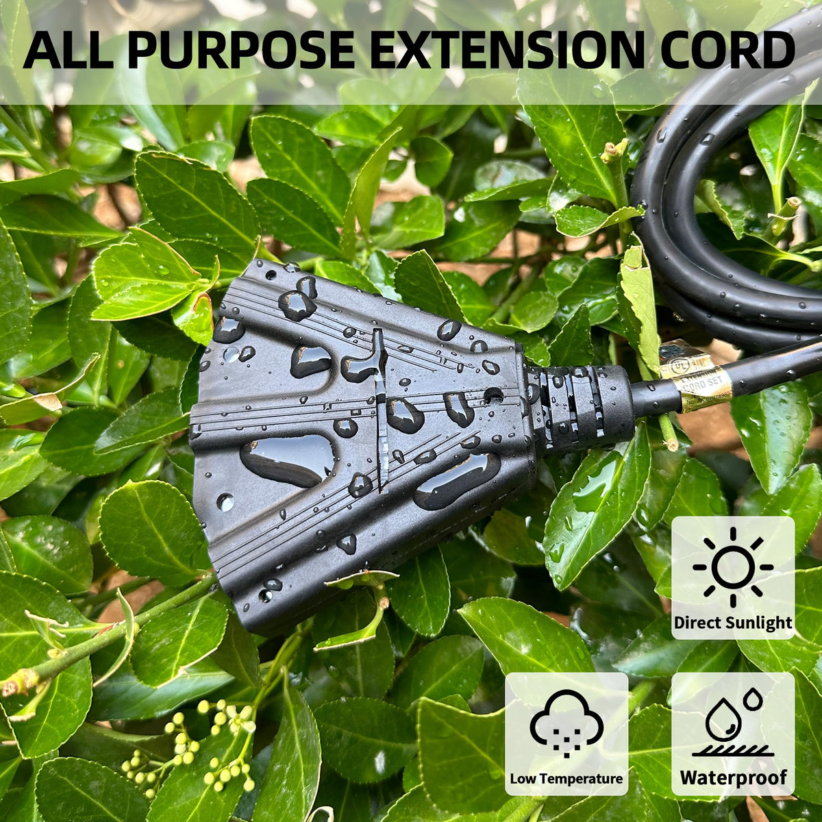 Q: Can I use this extension cord for outdoor appliances?A: Yes, this extension cord is designed for both indoor and outdoor use. It features a weatherproof construction, making it suitable for high-power outdoor equipment like lawn mowers and Christmas lights.