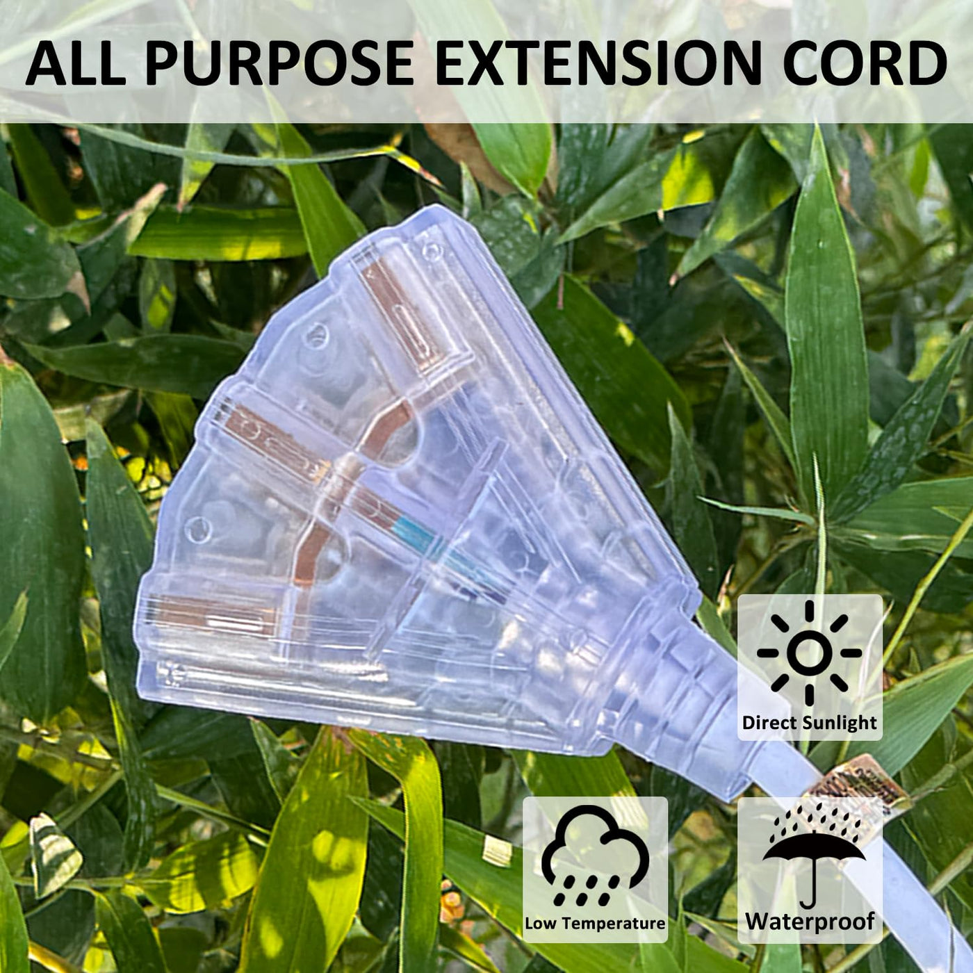 Specifications: Input Voltage: 125Vac, 60Hz Max Power Rating: 13A, Max 1625W Cord: Sjtw 16/3C White Transparent Lighted Outdoor Extension Cord Waterproof