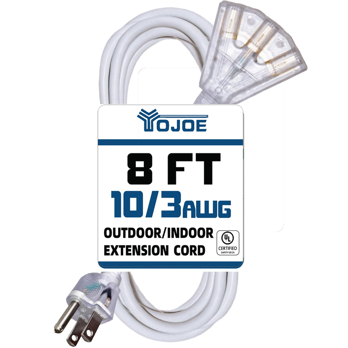 Yojoe 3 Outlets Indoor Outdoor Extension Cord With Lighted End, 3 Prong 15A Weatherproof Power Cord, 10 Gauge Heavy Duty 8 Ft Wh