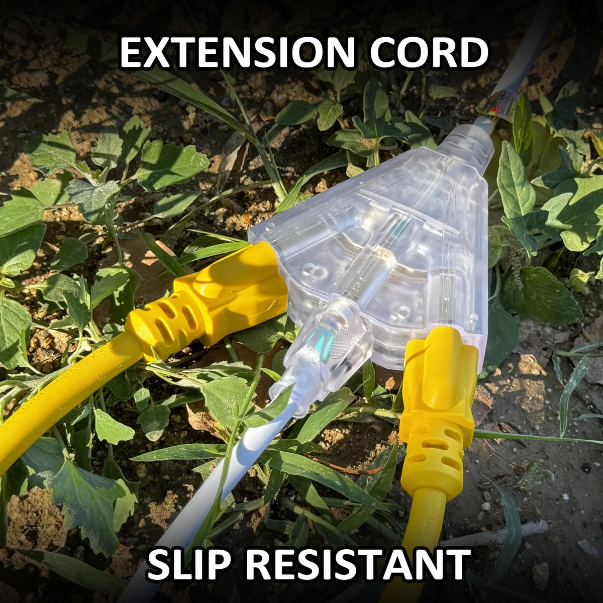 Q: Does the YOJOE extension cord have safety features?A: Yes, the YOJOE extension cord includes a lighted end that indicates when power is active, enhancing safety, and features a three-prong grounded plug for additional protection.