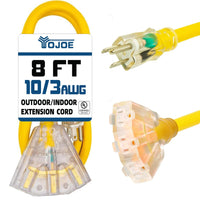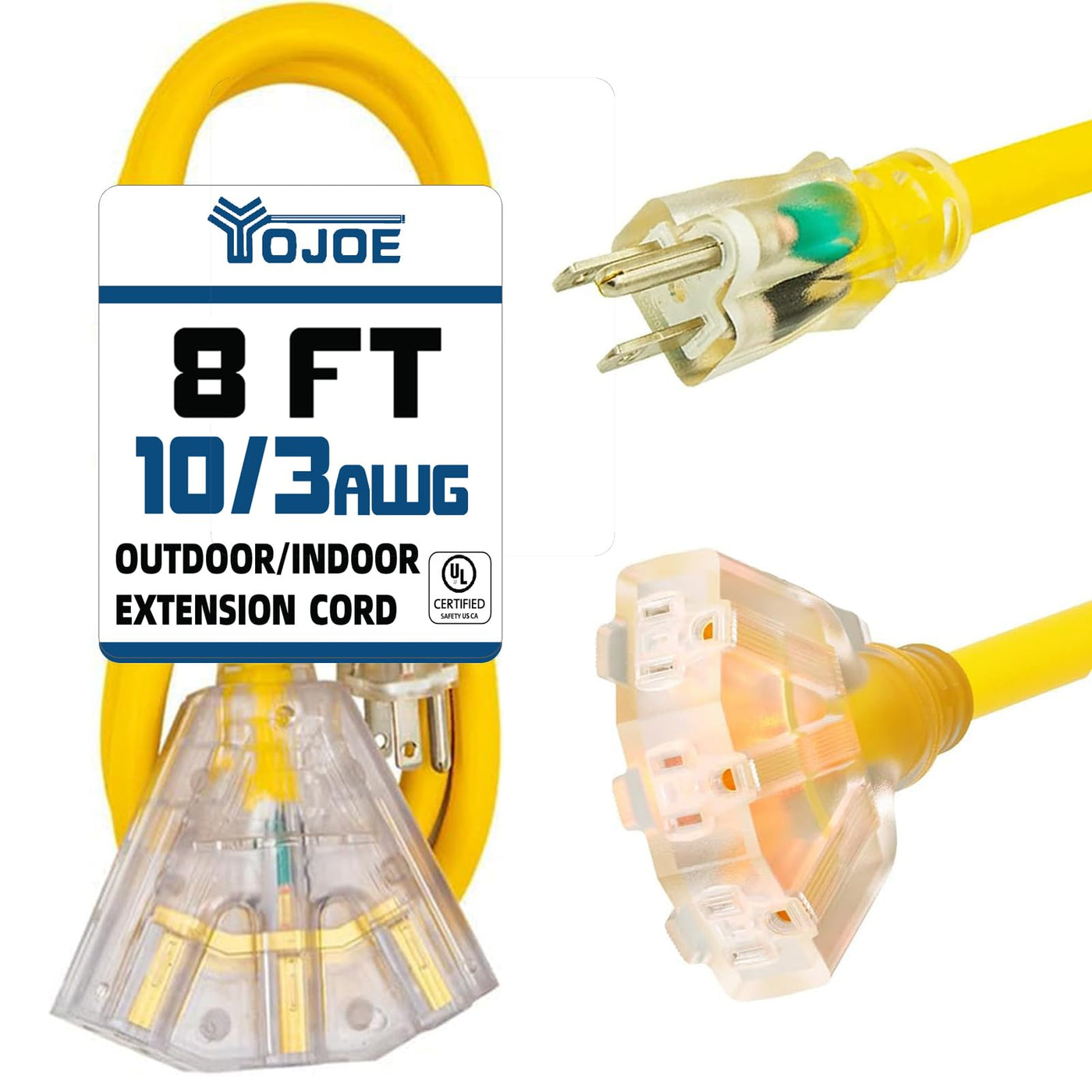 Yojoe 3 Outlets Indoor Outdoor Extension Cord With Lighted End, 3 Prong 15A Weatherproof Power Cord, 10 Gauge Heavy Duty 8 Ft Ye