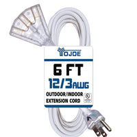 Yojoe 3 Outlets Indoor Outdoor Extension Cord With Lighted End, 3 Prong 15A Weatherproof Power Cord, 12 Gauge Heavy Duty 6 Ft Wh