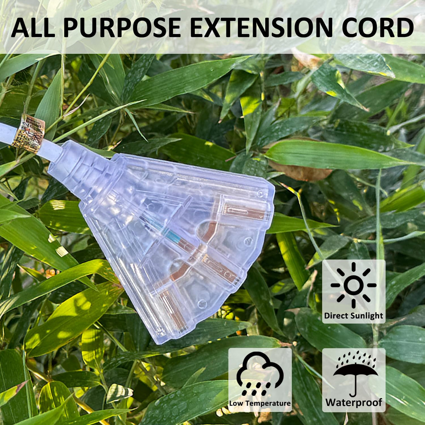 Specifications: Input Voltage: 125Vac, 60Hz Max Power Rating: 15A, Max 1875W Cord: Sjtw 12/3C White Transparent Lighted Outdoor Extension Cord Waterproof