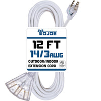 Yojoe 3 Outlets Indoor Outdoor Extension Cord With Lighted End, 3 Prong 15A Weatherproof Power Cord, 14 Gauge Heavy Duty 12 Ft W