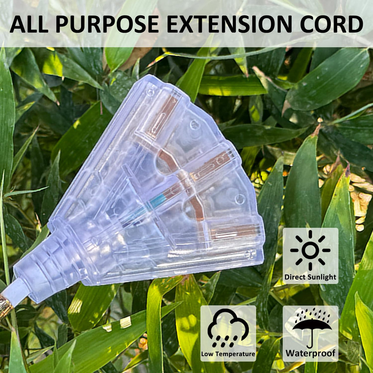 Specifications: Input Voltage: 125Vac, 60Hz Max Power Rating: 15A, Max 1875W Cord: Sjtw 14/3C White Transparent Lighted Outdoor Extension Cord Waterproof