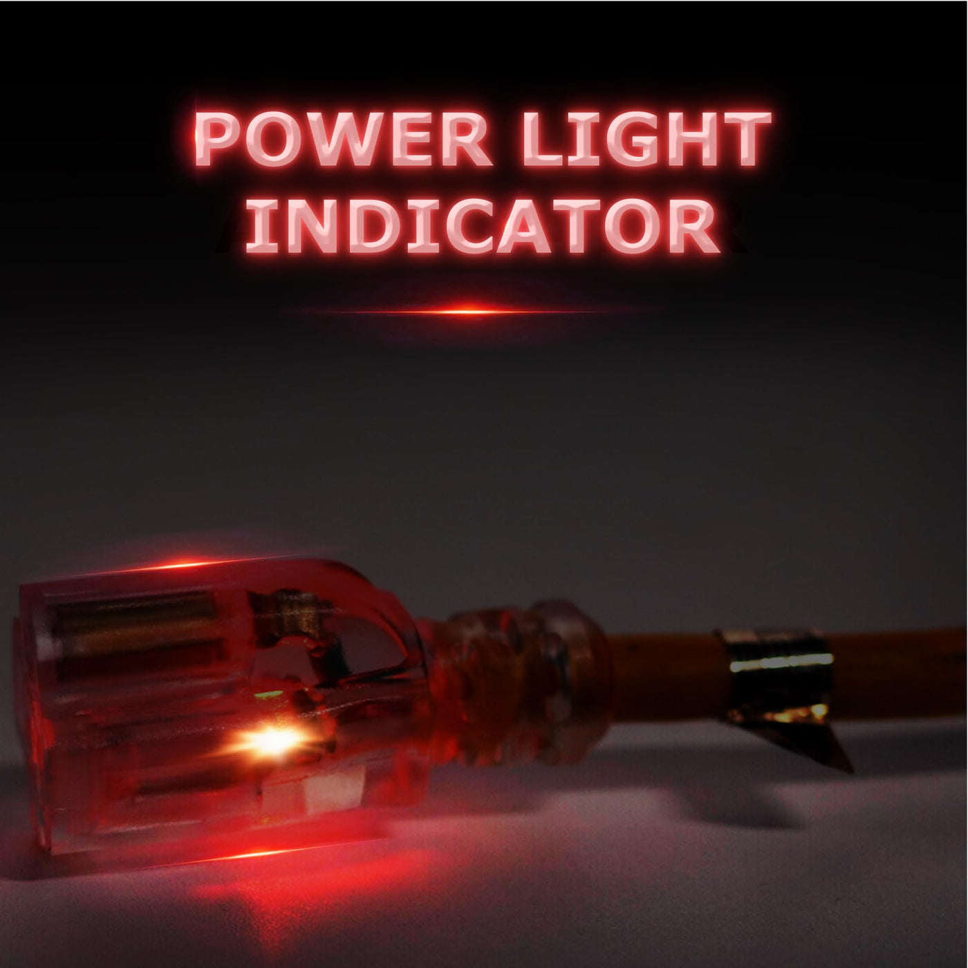 Q: Does this extension cord have safety features?A: Yes, the YOJOE extension cord includes a lighted end that indicates when power is active, enhancing safety during use. Additionally, it has a three-prong grounded plug for added safety and durability.