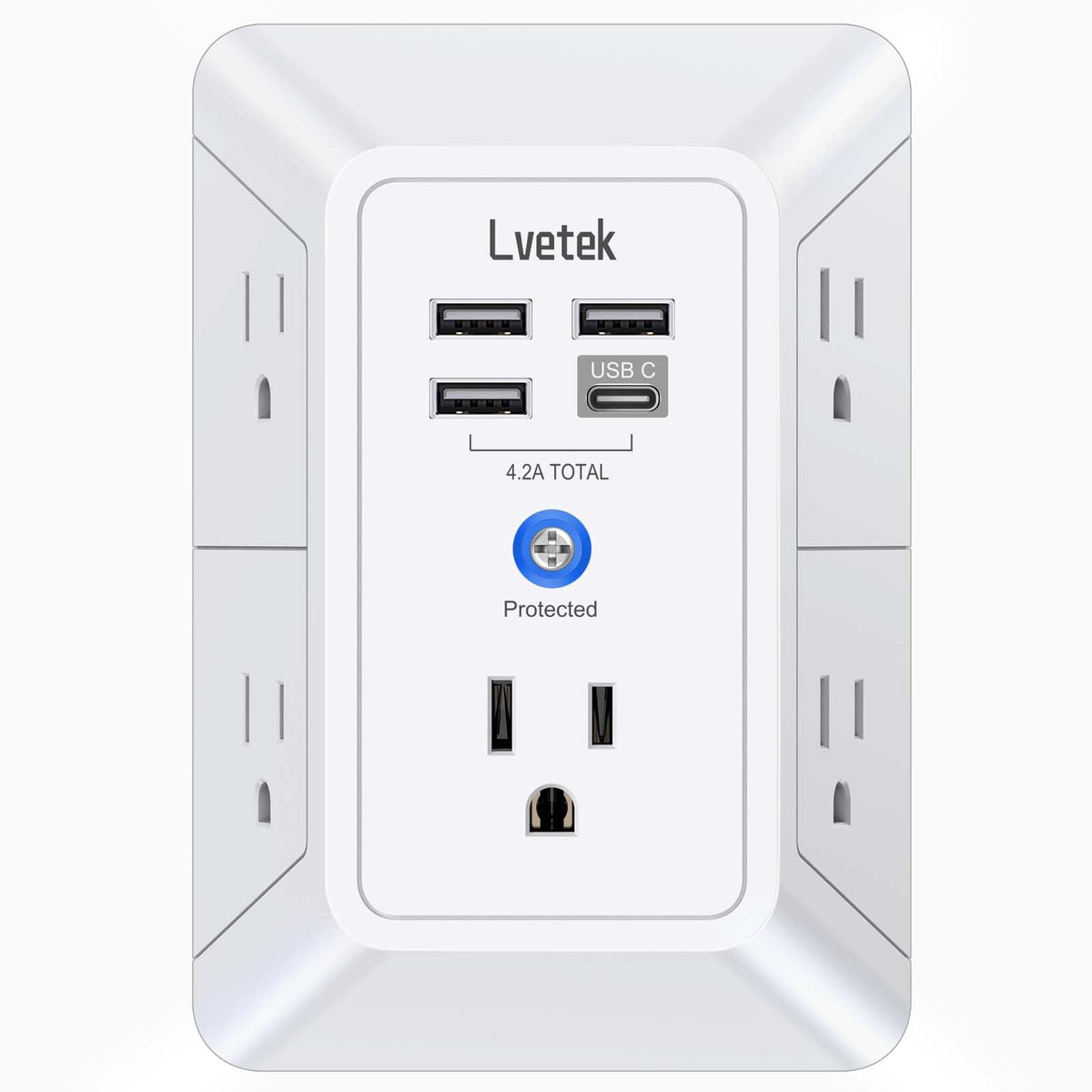 Multi Plug 5 Outlet Extender With 4 Usb Portswhat We Got:High Qualitysmart Usb Charging Ports1680 Joules Surge Protectorspecifications:Color: Whiteinput Voltage: 100-240Vac; 60Hzmax.Current: 15Amax.Power Rating: 1875Wusb Port Output: Dc 5V, Total 4.8Asurge Protection Rating: 1680 Joulespackage List:1 X Multi Plug Outlet Extender With Usb Charger1 X Instruction Manual1 X Paper Boxnotice:The Ucb-C Port Doesn'T Support Any Other Devices Which Need 9~22V Charging Voltage.Gfic Outlet/2 Prong Outlet Can Not Compatible This Plug Extender.Do Not Exceed The Total Rating Or It May Cause Damage To The Unit And Fire Hazards.