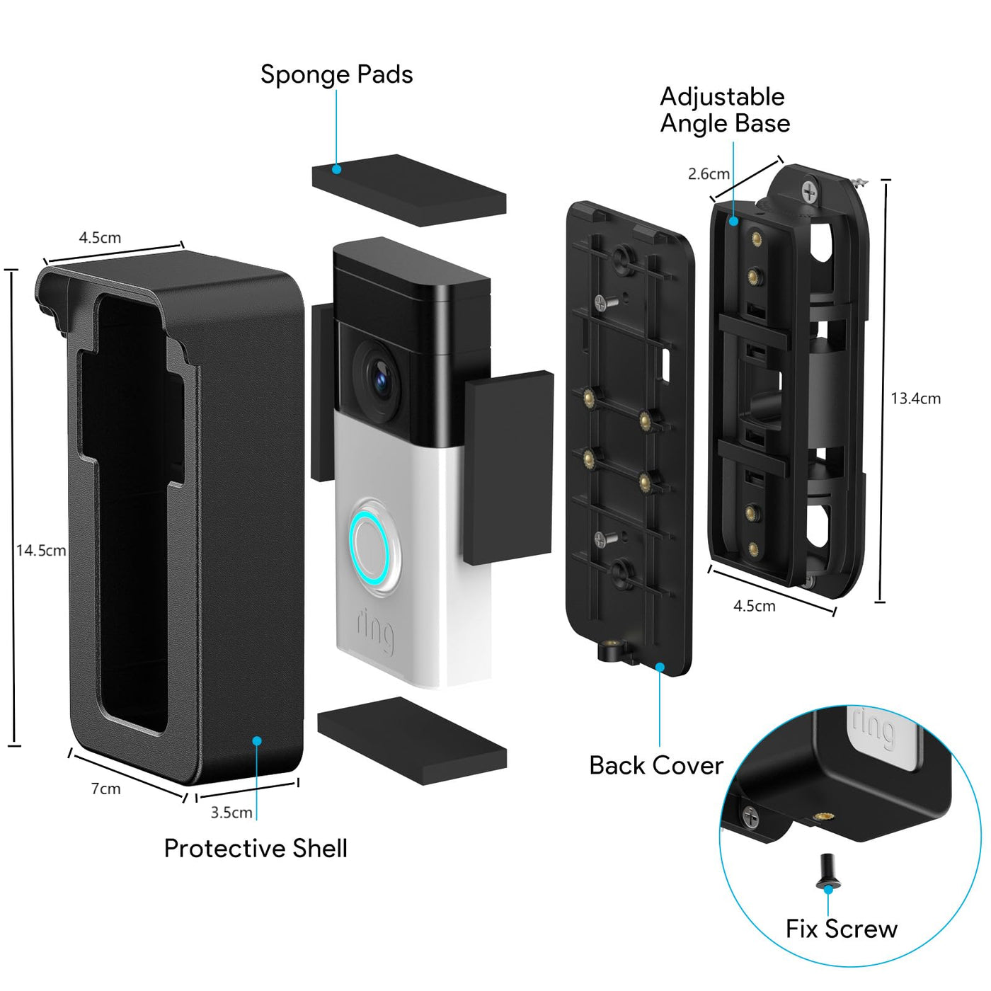 Anti Theft Video Doorbell Angle Mount, 45 To 135 Degree Adjustable Ring Camera Holder Doorbell Door Mount For Apartment, Compati