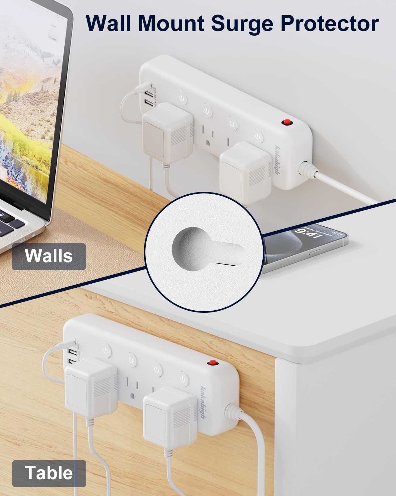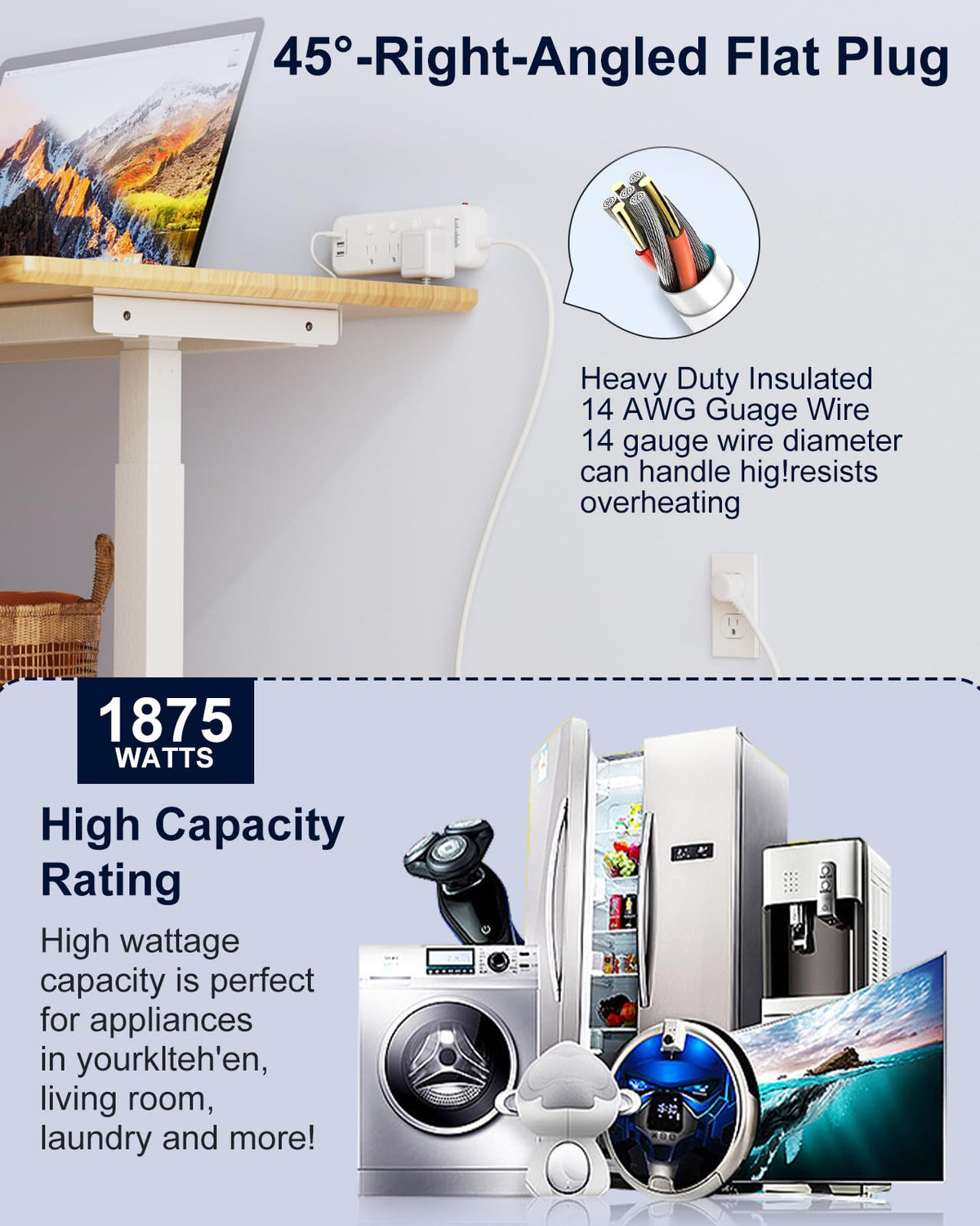 Appliance Extension Cord With Individual Switches On Off 5 Ft, 14 Gauge Heavy Duty Extension Cord With Usb Ports, 8 Outlets, H
