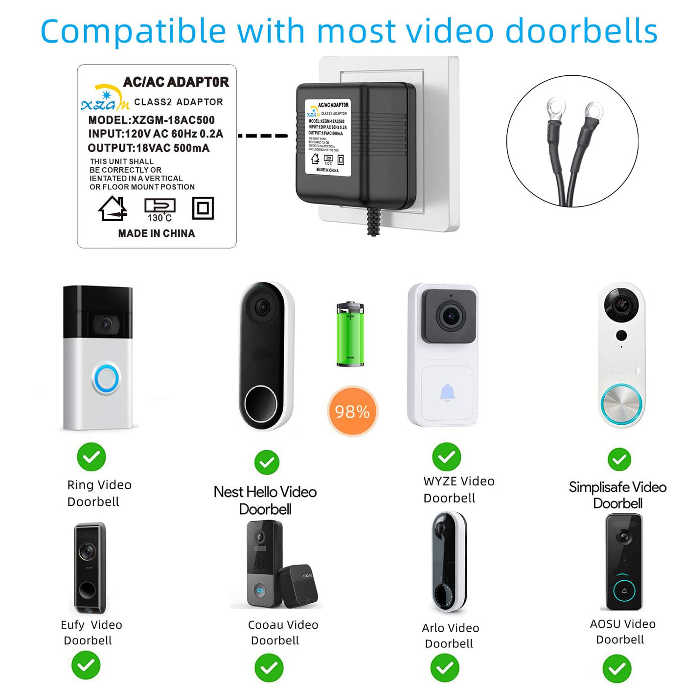 Xzgm Our Team Is Specialized In The Research And Development And Sales Of Transformers We Study And Design Better Solutions For Any Problems Of Transformers With Great Efforts And Abilities To Make You A Better Purchase Experience Clink Contact Seller Anytime If Theres Any Questions Were Here To Help You Solve The Problems Specification: Box Size: 95 X 50 X 85 Mm Input: 120V Ac 60Hz 02A Output: 18Vac Ac 500Ma Cable Length: 500 Cm (1968 Inch) Compatible With: Ring Video Doorbell Ring Video Doorbell Pro Ring Video Doorbell 2 Zmodo Smart Greet Wi-Fi Video Doorbell Package Includes 1 X 18V Video Doorbell Transformer 1 X 500Cm (1968 Inch) Cable