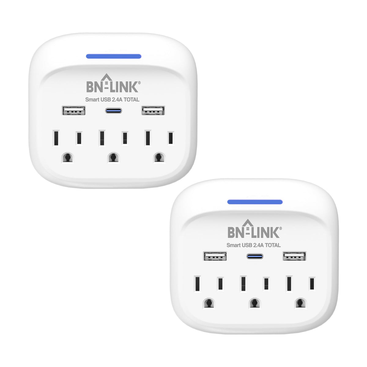 Bn Link Multi Plug Outlet Extender 2 Pack, 3 Wall Outlets Outlet Splitter With 3 Usb Ports(1 Usb C), Charging Adapter For Dorm,