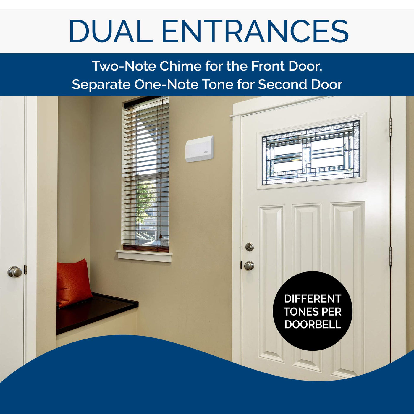 Q: How does the two-tone chime work for different doors?A: The Broan-NuTone LA11WH Door Chime features a two-note chime for the front door and a single-note chime for the back or second door, allowing you to easily differentiate between visitors.