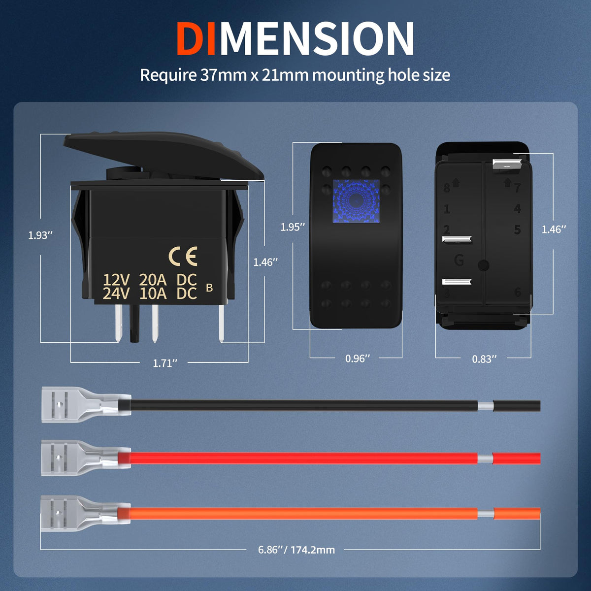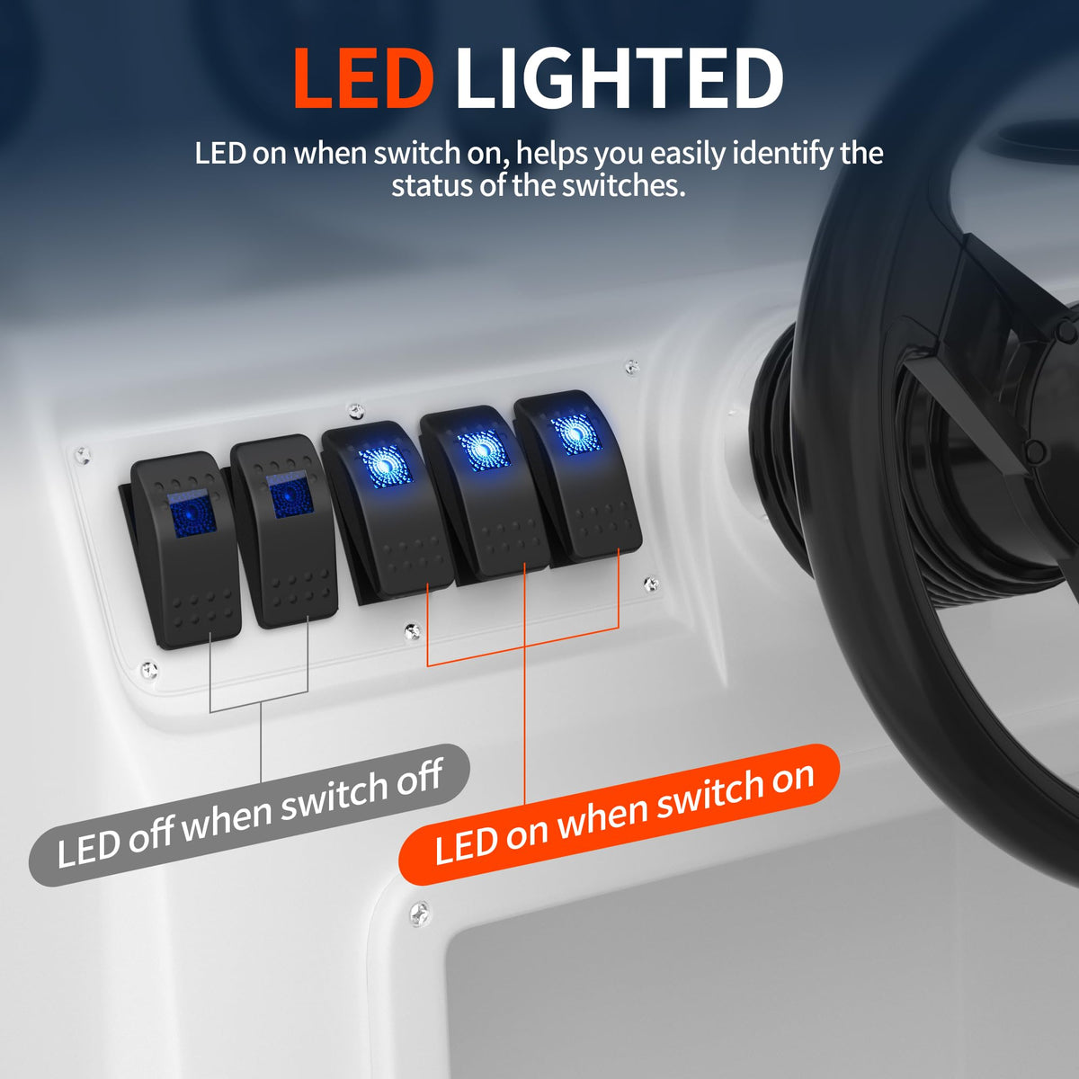Daiertek Marine Boat Rocker Switch 12V, Lighted Blue Led Waterproof Rocker Switch 12 Volt For Utv Rzr Spst 3 Pin On/Off 20A Heav