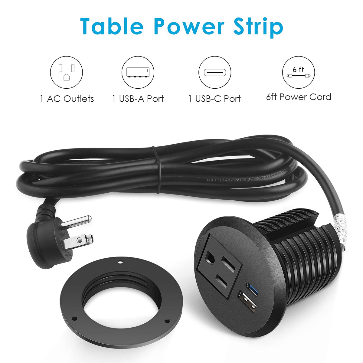 Round Electrical Outlet:Slim Round Design Maintains A Very Low Profile With The Surface Level, Elevating A Mere 0.2'' Above The Desktop. Conference Table Power Grommet - Electric Power &Amp; Usb Charging Modules,Desk Power Grommet Can Offers 1 Power Outlets With Usb Type A + Usb Type C Chargers Easy To Install: Add It To Any Workstation With Easy Installation - Simply Drill A 2'' Diameter Hole Size, Insert From Above And Hand Tighten Locking Ring From Below. - Material: Abs+Pc (Fire Protection) - Input Voltage : 125V/12A&Nbsp;&Nbsp; - Max Power Output: 1500W - Usb-A Output: 5V/2.1A Max - Usb Type-C Output: (20W) Dc 5V 3A, 9V 2A, 12V 1.5A - Hole Cut Out Dimensions: Small Cut Out Of 2Inch - 6Ft Power Cord Package Included: 1 X Grommet Desktop Power Attention: This Item For Indoor Use Only.