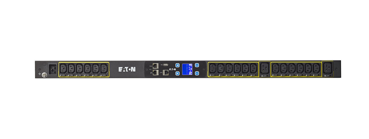 Manufacturer: Eaton Part: Emi103-10 Upc: 743172050441 Category: Upspower Devices - Ups Accessories - Power Distribution> Options> Description: Eaton Epdu G3 Metered Inputs> Eaton Epdu G3 Metered Input - Power Distribution Unit (Rack-Mountable) - Ac 200-240 V - 3. 84 Kw - Ethernet 10100, Rs-232 - Input: Iec 60320 C20 - Output Connectors: 20 - 21U - Black> Product Description Eaton Epdu G3 Metered Input - Power Distribution> Unit - 3. 84 Kw Device Type Power Distribution Unit - Rack-Mountable Rack Size 21U Input Voltage Ac 200-240 V> Output Voltage Ac 200-240 V> Power Capacity 3. 84 Kw Input Connectors 1 X Power Iec 60320 C20 Output Connectors 18 X Power Iec 60320 C13 2 X Power Iec 60320 C19 Networking Ethernet 10100, Rs-232 Dimensions (Wxdxh) 2. 1 In X 2. 1 In X 35. 5 In Extended Specifications General Device Type Power Distribution Unit - Rack-Mountable Height (Rack Units) 21U Color Black> Power Device Input Voltage Ac 200-240 V> Frequency Required 50 - 60 Hz> Input Connectors 1 X Power Iec 60320 C20 Power Output Connectors Details 18 X Power Iec 60320 C13 2 X Power Ice 60320 C19 Output Voltage Ac 200-240 V> Max Electric Current 16 A Power Capacity 3. 84 Kw Networking Remote Management Interface Ethernet 10100, Rs-232 Expansion Connectivity Interfaces 1 X Management (Ethernet) - Rj-45 1 X Management (Rs-232) - Rj-45 1 X Cascading - Rj-45 Miscellaneous Cables Included Power Cable - Integrated - 10 Ft Features Lcd Display, Voltage Monitoring, Vertical Orientation