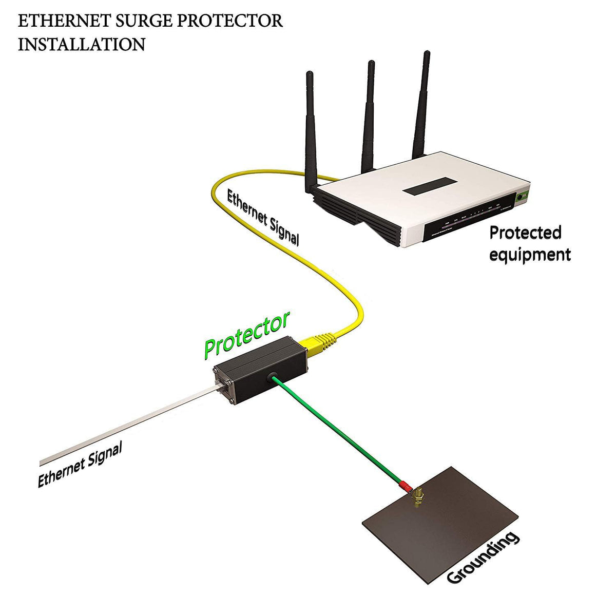 Ethernet Surge Protector Is A Surge Protection Device (Spd) That Is Inserted Inline On An Rj45 Cat6/Cat5/Cat5E Cable To Prevent Damage Of Electronic Networking Equipment.The Thunder Arrestor Also Offers Secondary Protection, Which Will Arrest Emf Induced Surges (Nearby Lightning Ethernet).Ethernet Surge Suppressor Tp302 Use A Gas Discharge Tube (Gdt) On All 4 Pairs (8 Wires).Gigabit (Gbe) 10/100/1000/2500 Mbps Data Rate Transfer Supports An Ultra-Fast Maximum Data Rate Of 1 Gigabit Per Second.Poe Surge Protector Allows A Single Rj-45 Cable To Provide Both Data Connection And Electric Power To Device.Mounting Flange On The Both Sides Of Lightning Suppressor Allows Easy Mounting To A Wall, Network Panel, Cabinet, Or Rack Attaching By Screws (Not Included).The Ethernet Ground Wire (12 Inch - 12 Awg) On The Surge Protector Needs To Be Connected To Ground Through The Shortest Path.The Lightning Arrestor Can Be Used With Unshielded Twisted Pair (Utp) Or Shielded (Stp) Cables. The Aluminum Enclosure Allows Shielded Current To Be Passed Through The Metal Case Of The Network Surge Protector. Ethernet Surge Protector Tp302 - Lan Network Esd Thunder Lightning Surge Arrester Gigabit Poe++ Rj45 Cat5 Cat5E Cat6 Suppressor Ethernet Surge Protector Tp302 Offers Multiple Stages Protection Gas Discharge Tubes.Gigabit Ethernet Arrestor Is Capable Of Protecting A Wide Array Of Valuable Technology Products. Small, Extremely Well-Built, Provide Deep Protective Measures For Numerous Devices. In The Event Of Lightning Strikes, Or Other Elements That Put Your Devices At Risk, The Surge Arrestors Goes To Work Immediately. Lan Surge Protector Has A Distinct Reputation For Ethernet Lightning Protection Reliability. Ethernet Suppressor Is Easy To Set Up, And It Is Just As Easy To Use. These Network Surge Protectors Represent One Of The Most Cost-Effective Solutions For Protecting Your Devices And Networks.
