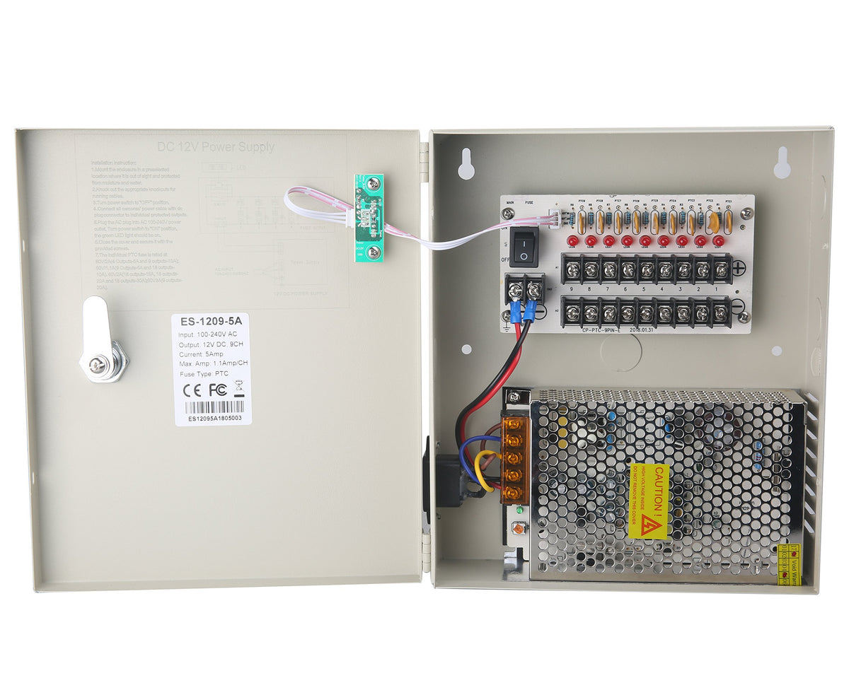 Eversecu 9 Channel Dc12V 5 Amp Ptc Fuse Cctv Power Supply With Metal Box, Ac Plug And Lock For Security Cameras, Dvrs, Ip Camera